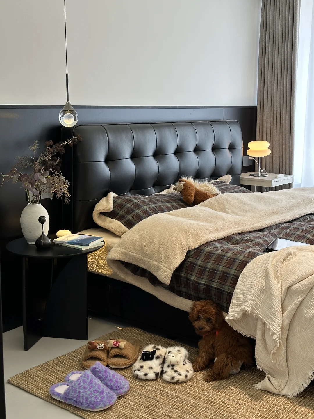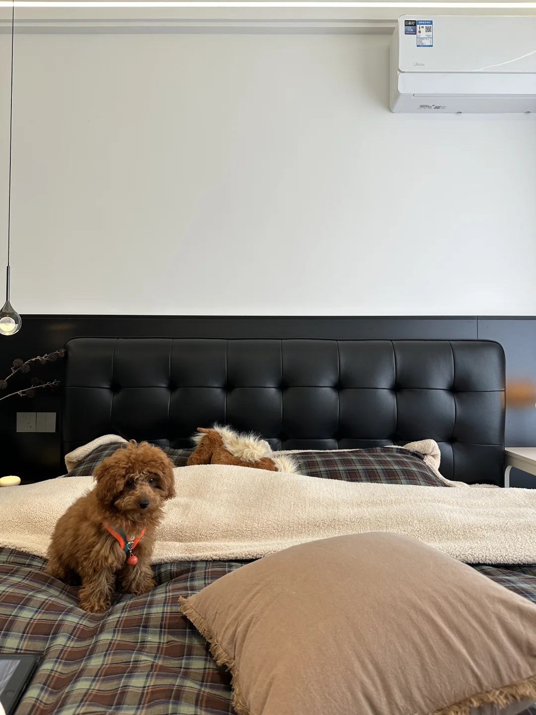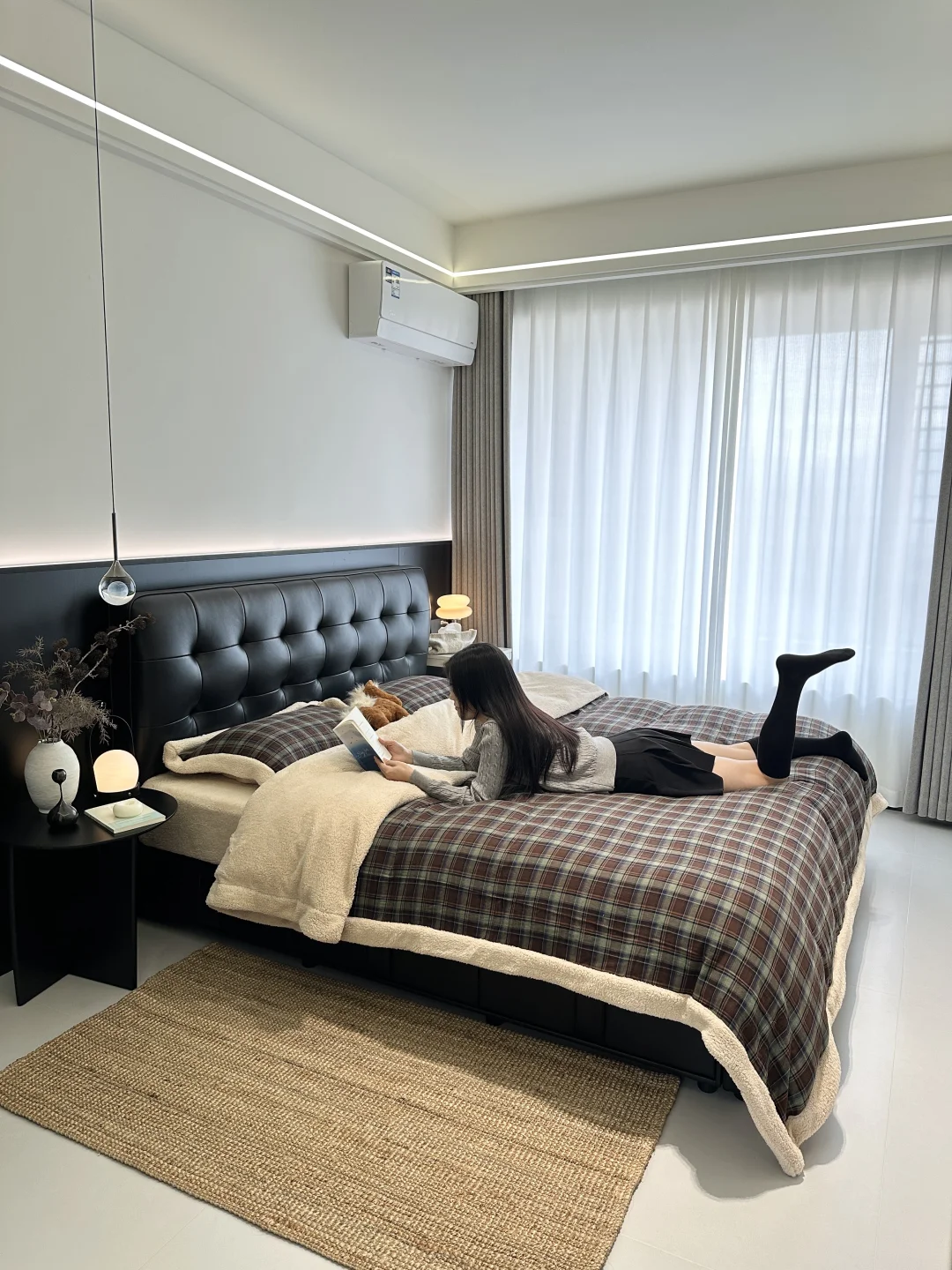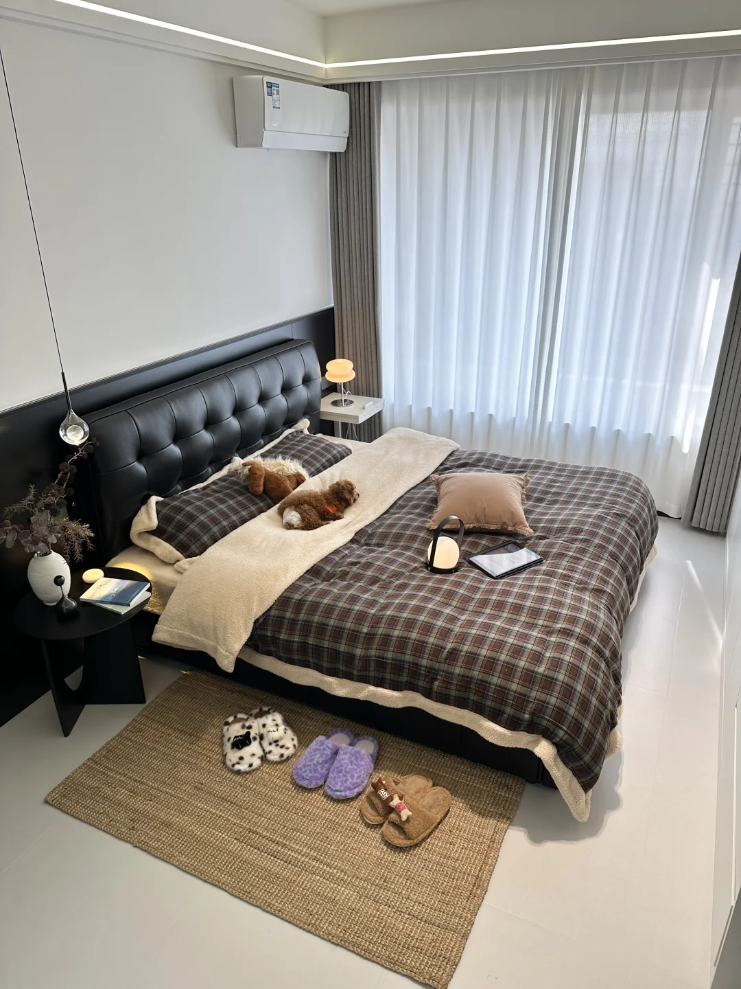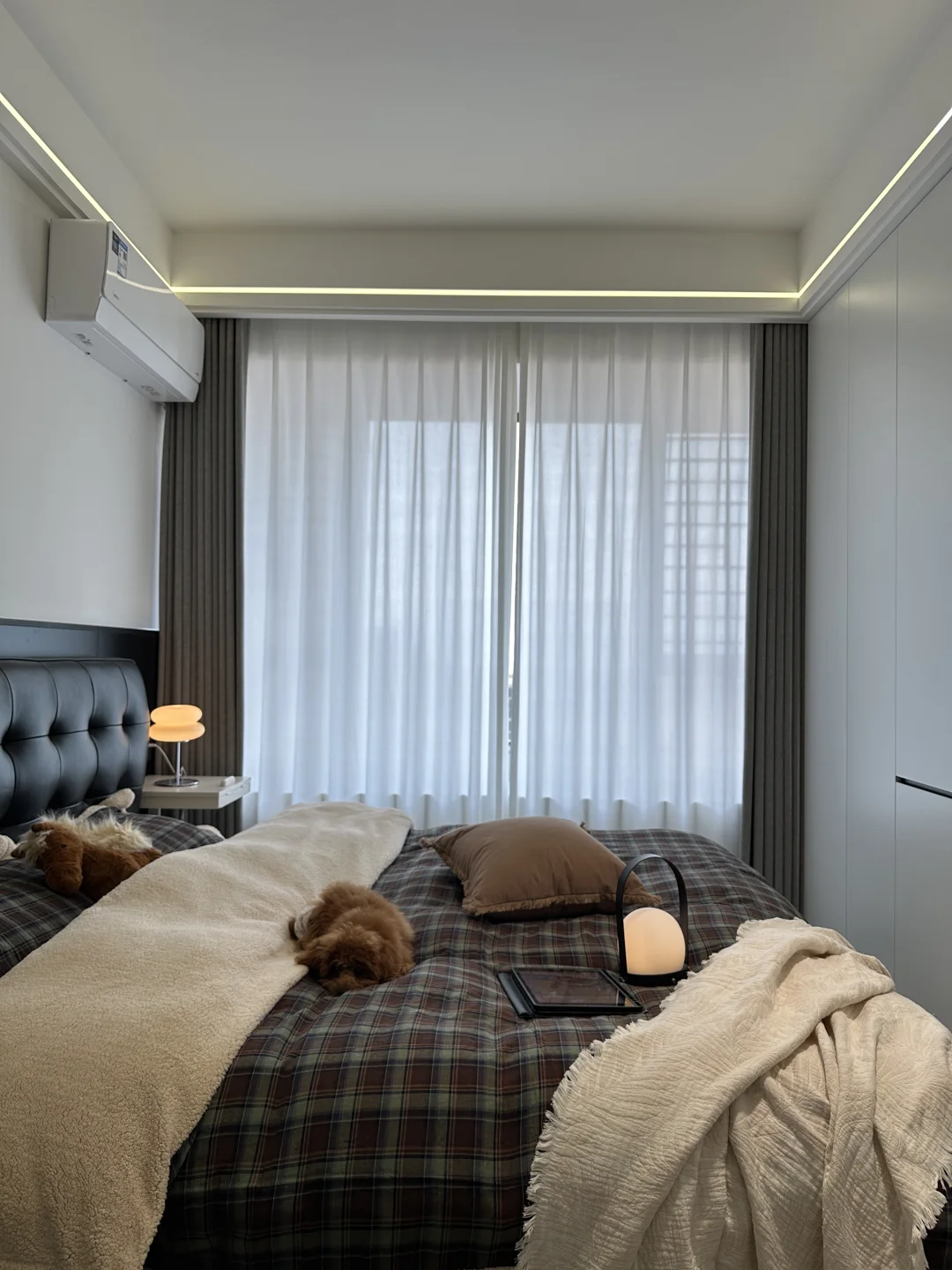 我家主卧14平,开间3.2米、宽4.4米,没做L型衣柜,卧室通风采光直接拉满,床尾衣柜用下来居然比衣帽间还实用!