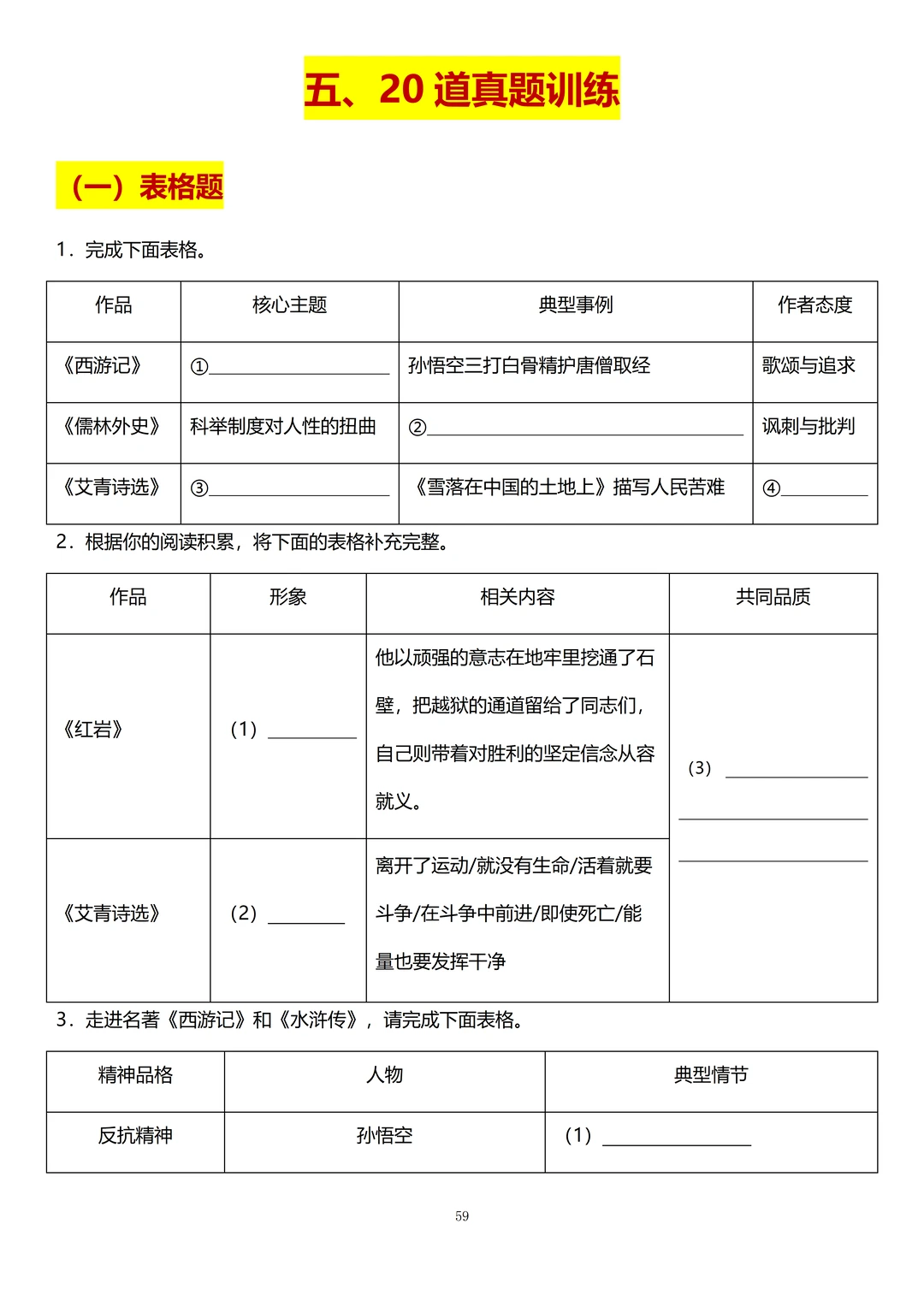 为了帮助大家提高期末考试名著板块的分数,老师精选了近 3 年各地期末考试的20道名著真题,包括10道高频表格类题型和10道问答题,提前练好,无论考试考到哪种类型都不用慌。