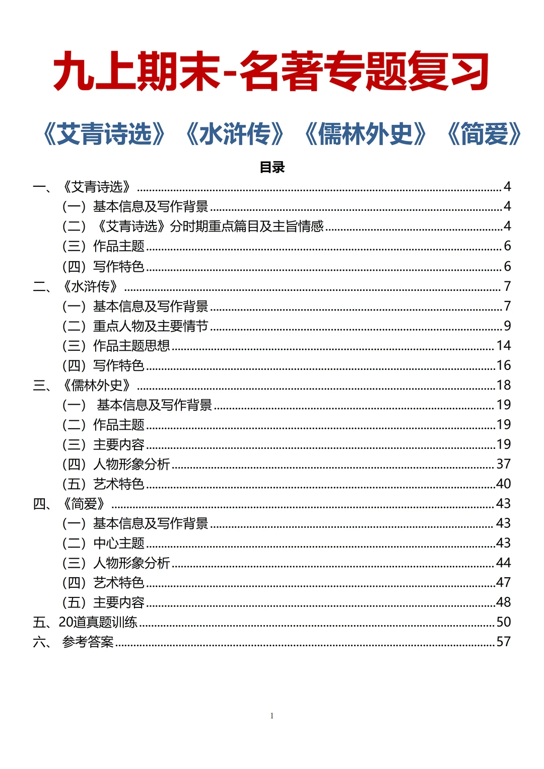 👉 我给大家梳理了九上期末必考的4本名著《艾青诗选》、《水浒传》、《儒林外史》和《简爱》的常考的知识点