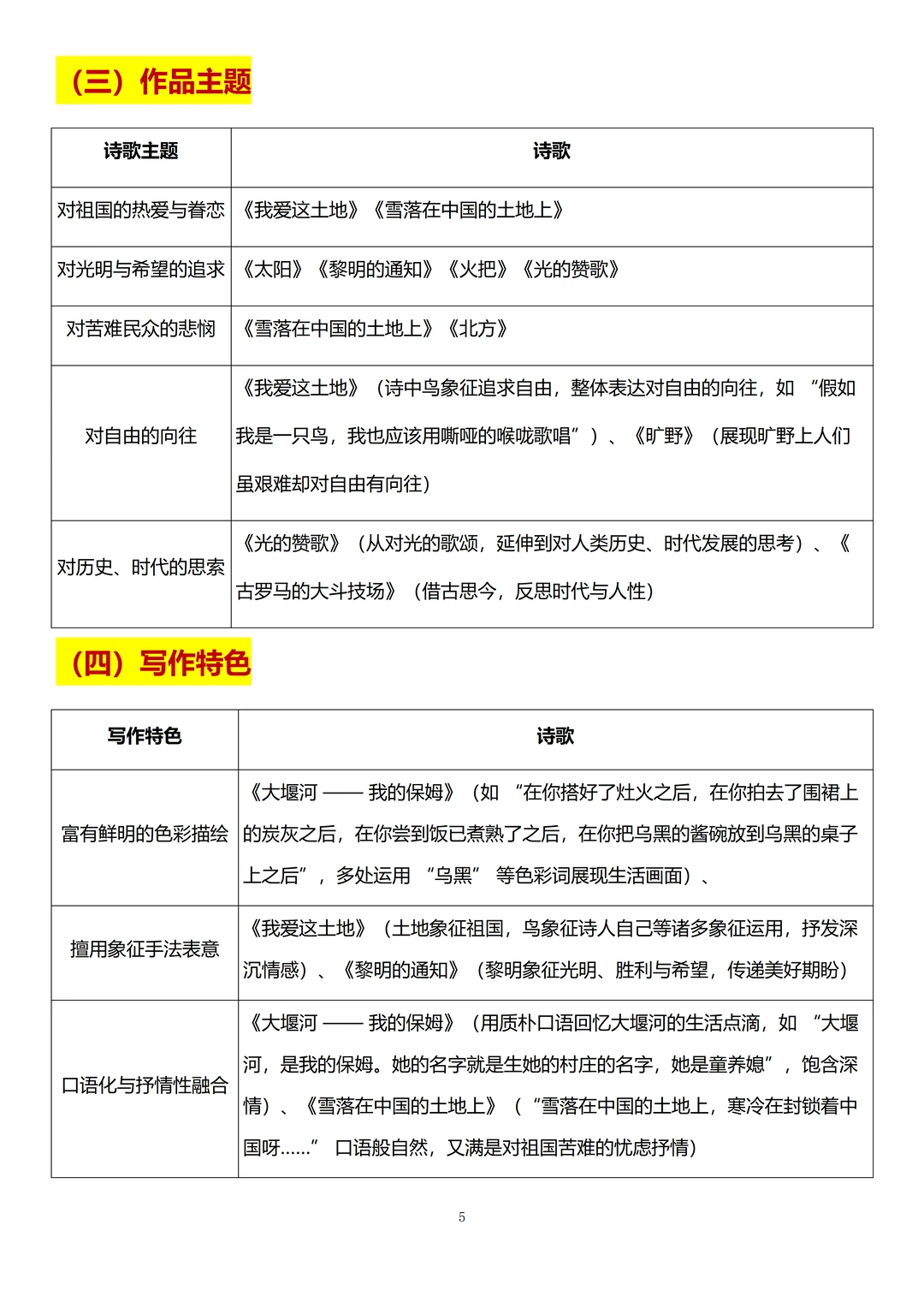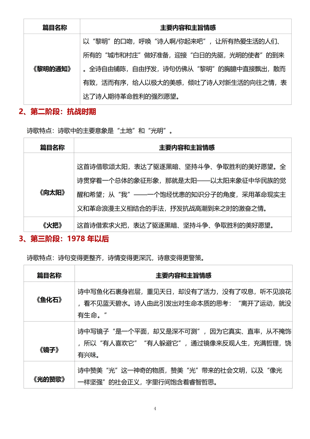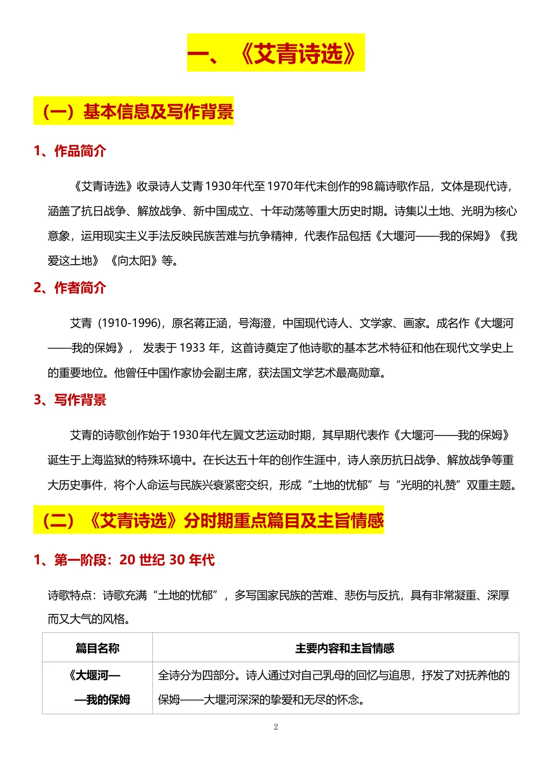 2、《艾青诗选》分时期重点篇目及主旨情感