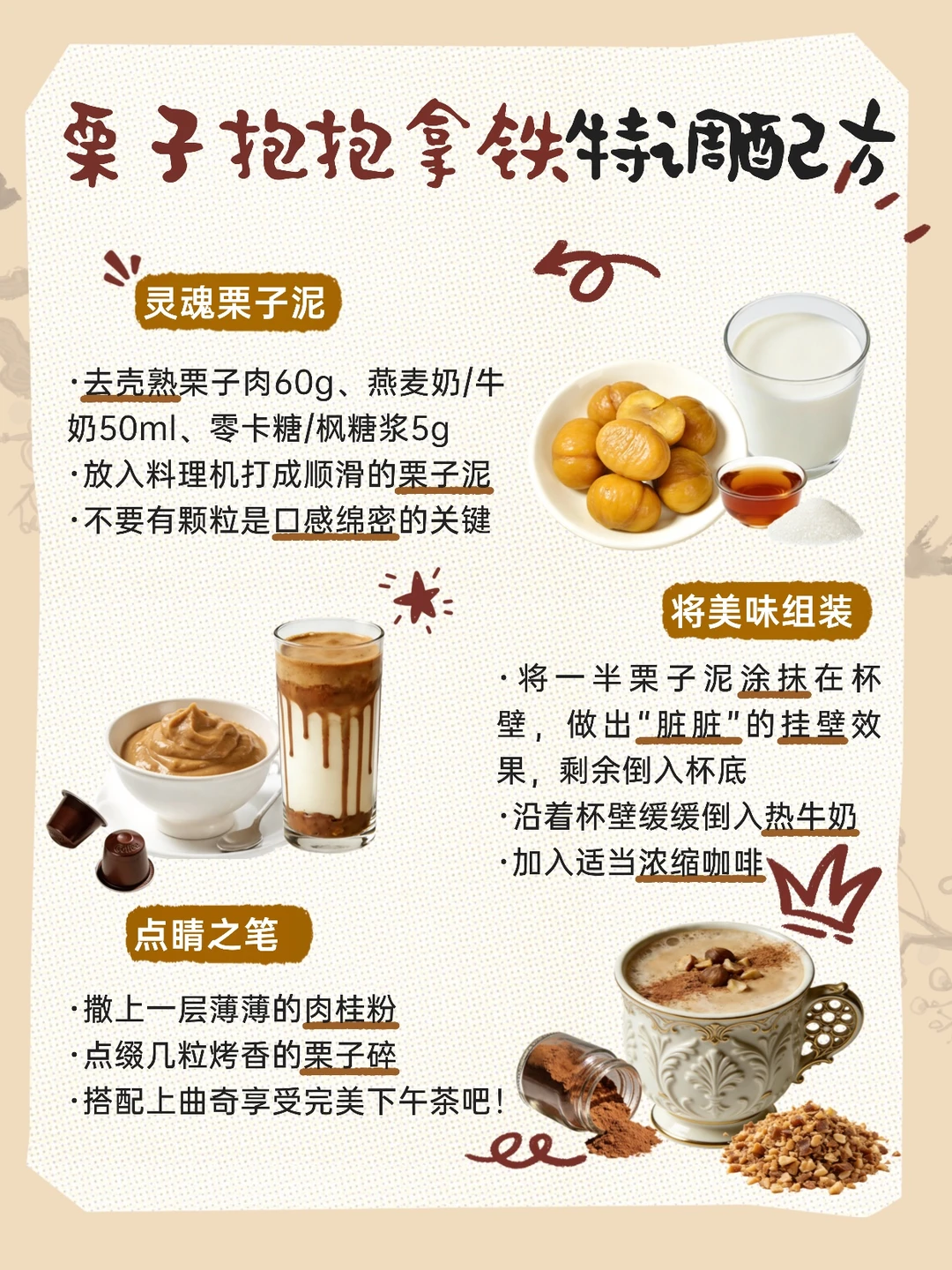 🌰栗子泥提供扎实的香甜和绵密口感,比糖浆风味更天然有层次。