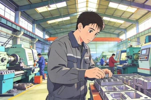 在这片暖融的光影中,小海(化名)身着工装,正专注地清点着模具成品,额头上沁出细密的汗珠。