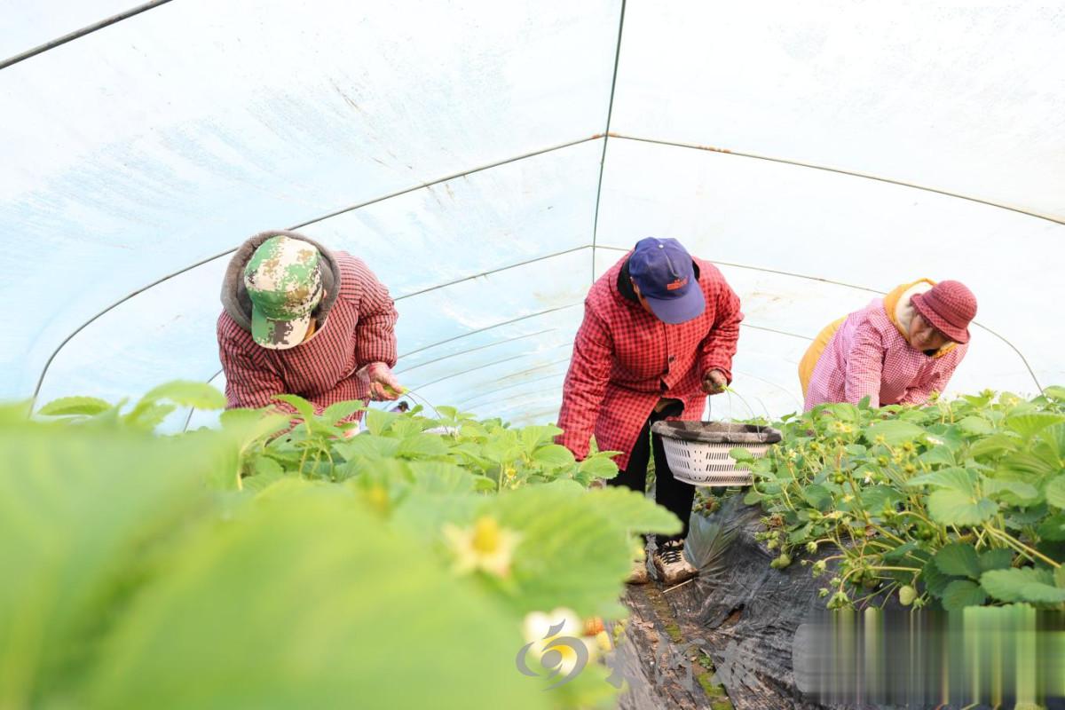 12月17日,走进大棚,一片翠绿的藤蔓中,一颗颗鲜红饱满的草莓点缀其间,果香扑鼻而来。工人们手提果篮穿梭其中,精心挑选着这“头茬”的新鲜草莓,感受丰收的喜悦。