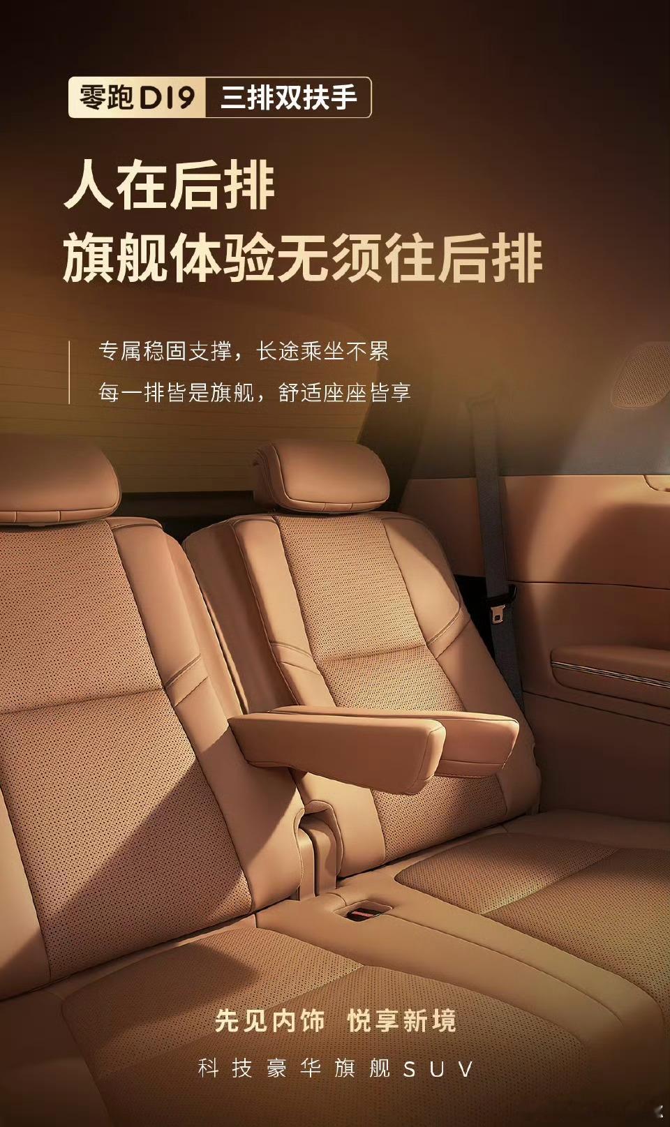 零跑D19的这个设计可以,市面上的三排座SUV在第三排基本都没有中央扶手,大家好像都默认第三排就是没有的有了扶手一来更舒适,二来可以形成物理隔离,免得俩人靠太近了尴尬零跑d19汽车资讯大v聊车