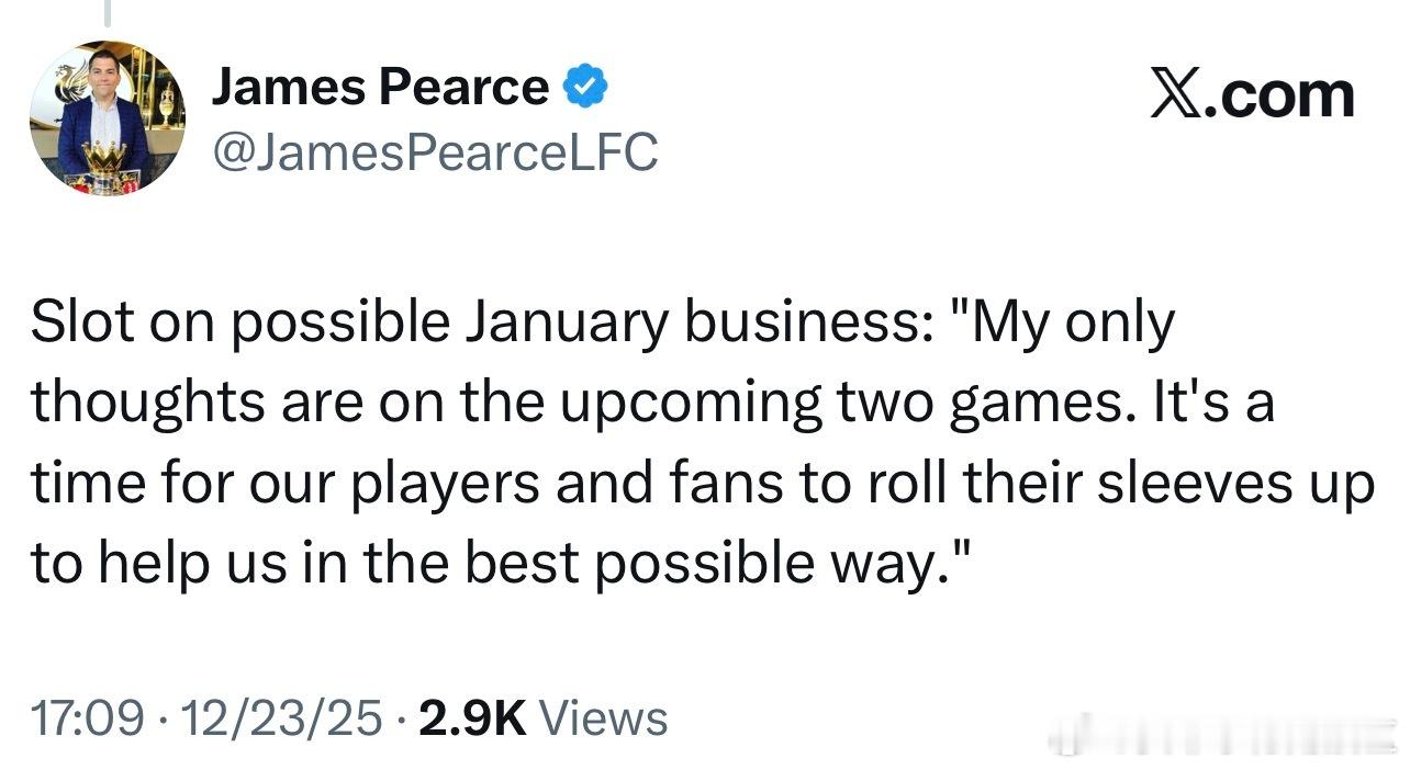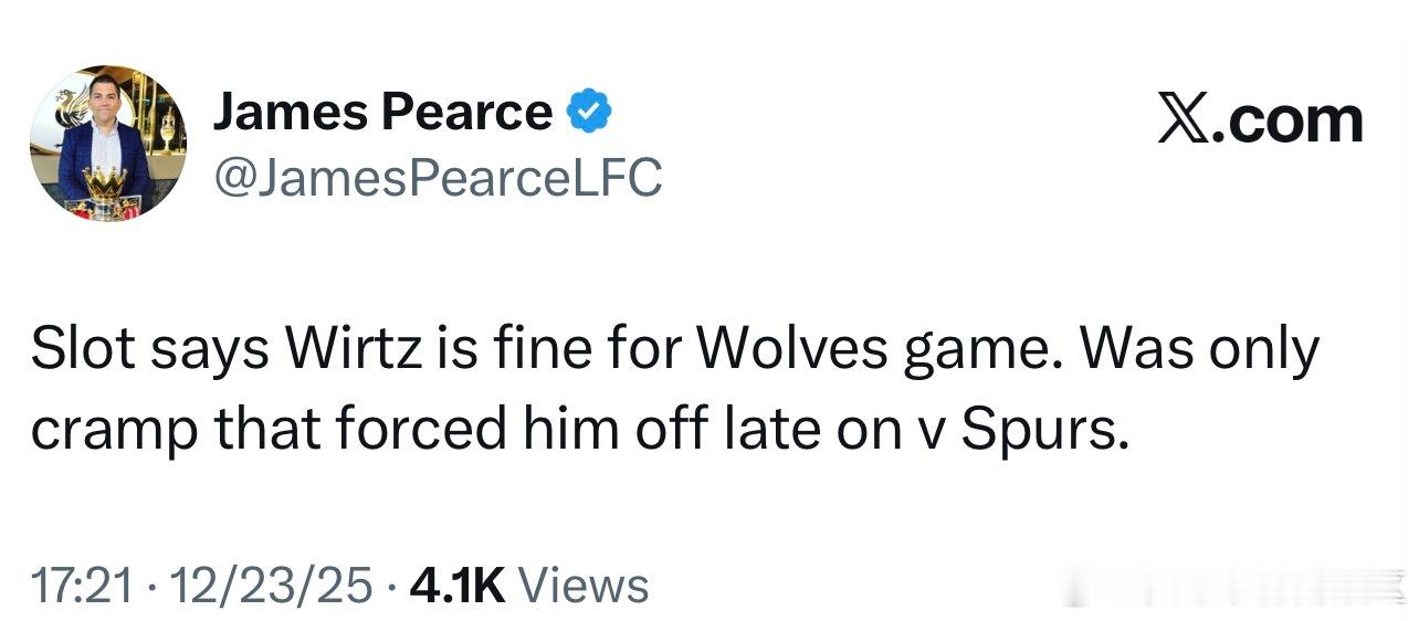 布拉德利和加克波都有机会在周五重返球队训练,都是有50%的可能性赶上对阵狼队的比赛。戈麦斯和远藤航仍会缺席比赛。关于冬窗,斯洛特表示现在只想接下来的两场比赛。 维尔茨没啥事,对阵热刺被换下就是抽筋了
