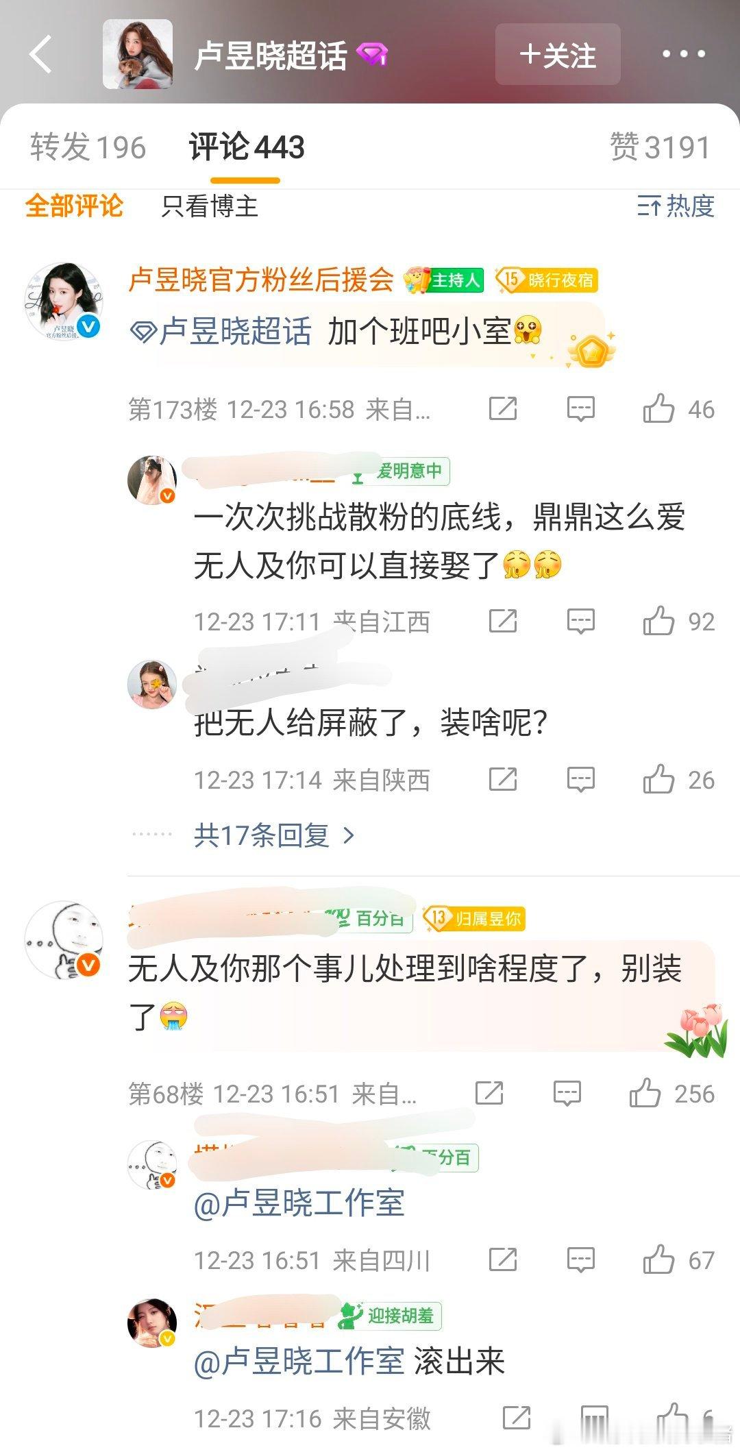 无人及你站姐今日发了卢昱晓 12.2 非公开晚宴活动,摄像机都出来了,粉丝喊话工作室要求处理💧