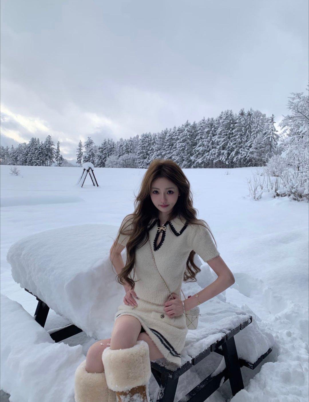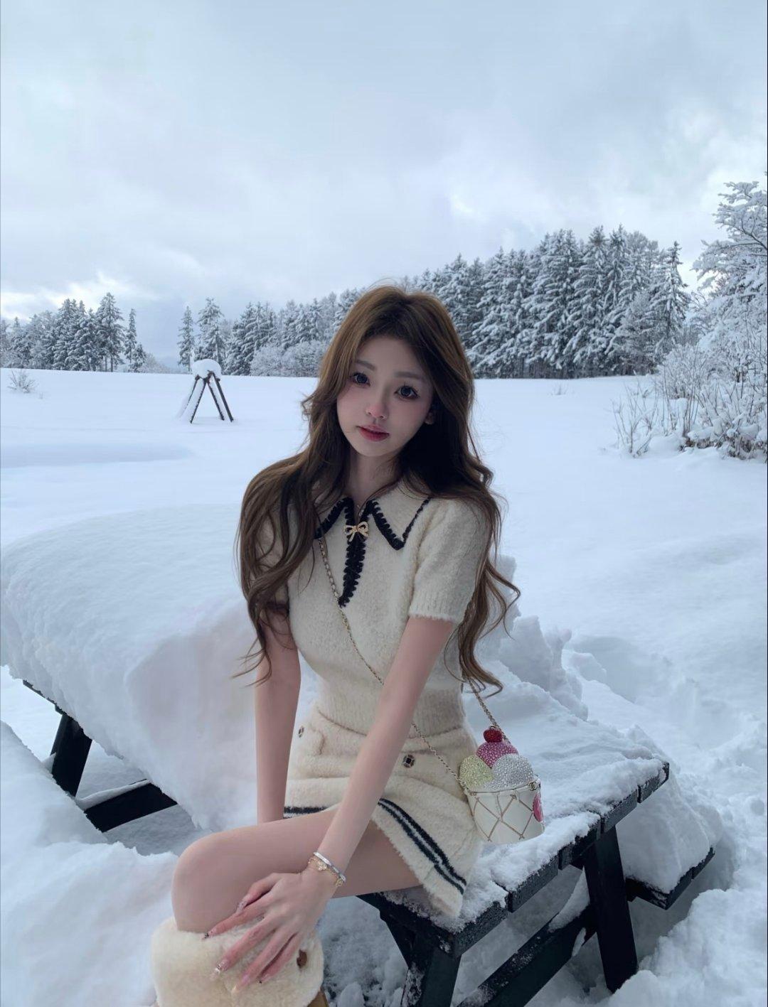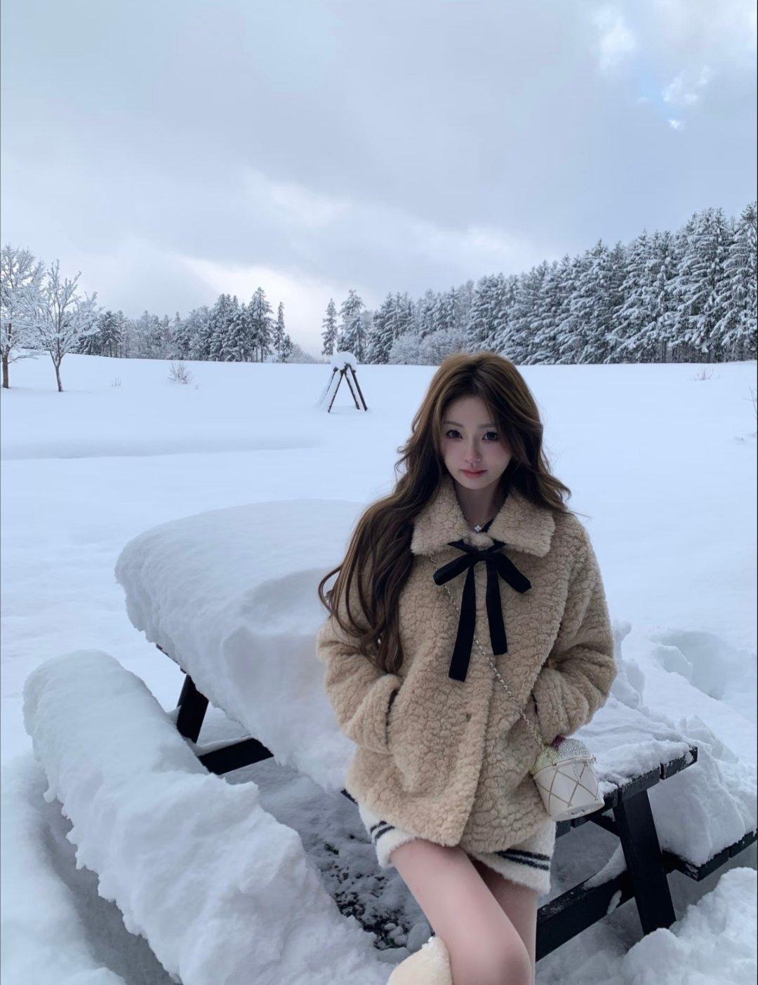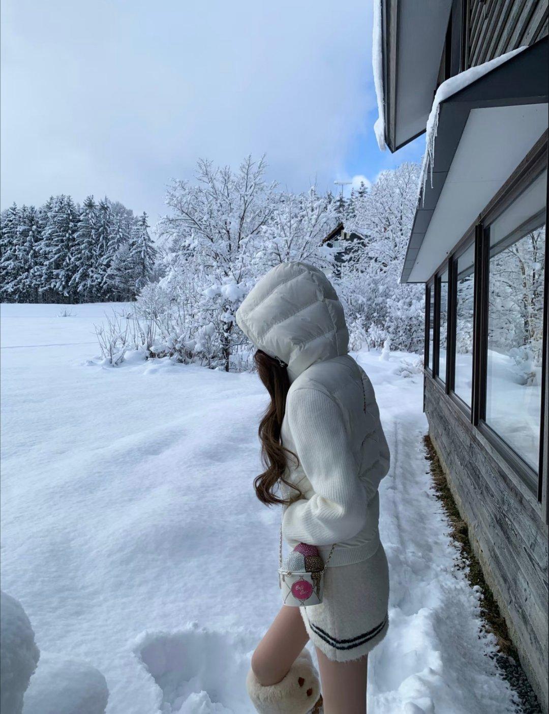 冬日雪景中的甜美少女,暖心冬日穿搭