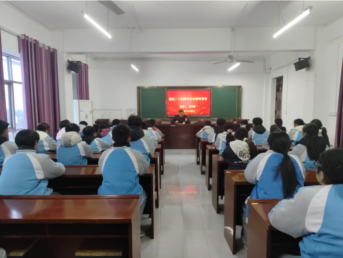 雨中的校园更显静谧,雨滴轻敲窗棂的滴答声,与宣讲声交织成独特的旋律。王学儒同志深耕党的宣传思想战线多年,政治素养过硬、理论功底扎实,既有着丰富的基层宣讲经验,又对党的创新理论有着系统深入的研究。宣讲中,他紧扣“以历史主动精神集中力量办好自己的事”这一核心主线,结合全会关于教育强国、人才强国建设的部署要求,针对学生群体的认知特点,用生动的案例、通俗的语言、鲜活的比喻拆解理论内涵。他将“十五五”时期的发展蓝图与青少年的成长成才紧密相连,重点解读了“统筹教育科技人才发展”“办好人民满意的教育”等重要论述,从“为什么学、学什么、怎么学”的角度,为学生们阐释了教育在中国式现代化建设中的战略意义,也指明了新时代青少年将个人理想融入国家发展大局的努力方向,让抽象的理论知识如同细雨润苗,变得贴近校园、贴近生活、贴近学生。