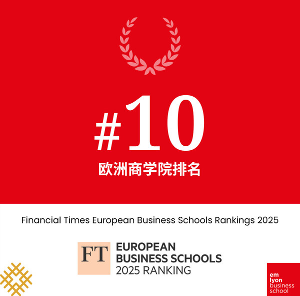 上海2025年12月23日--《金融时报》2025欧洲商学院排名将法国里昂商学院列为欧洲第十位。该排名基于学校在《金融时报》2024年发布的五项主要课程排名中的综合表现得出:管理学硕士(MiM)、MBA、高级管理人员工商管理硕士(EMBA),以及两个非学位高管教育课程排名——公开课程和定制课程。