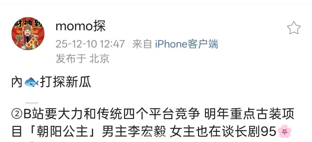 古装剧《朝阳公主》李宏毅、代露娃,字母站真的49年入gj,长剧都势微了,它开始发展古装剧了。理论上来说李宏毅一番,但是代露娃我还蛮看好她的,去年古偶里有了水花,为啥会去字母站演古装剧二番了?长剧女二我觉得应该能拿到啊?现在两家还交流起来了,真觉得没必要。李宏毅代露娃