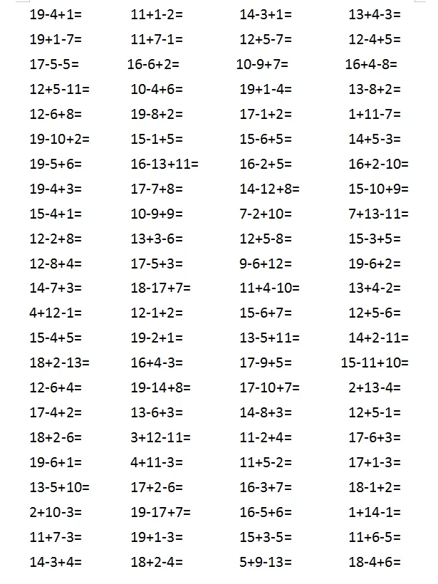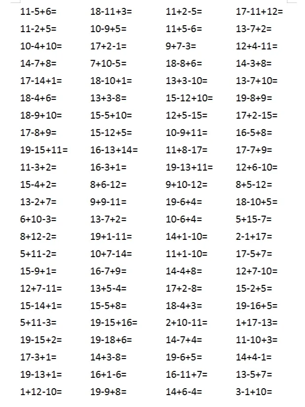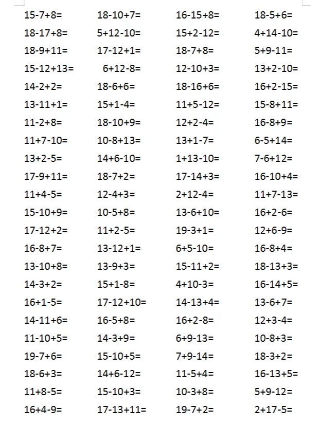 20以内加减法一年级上册