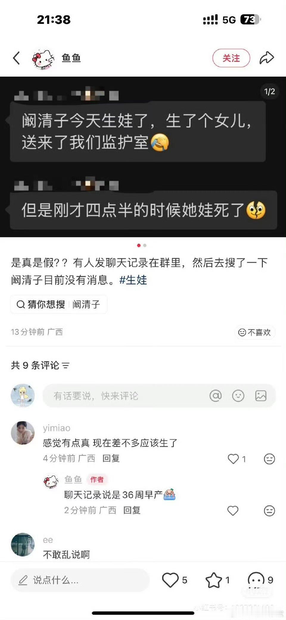阚清子天啦真的假的啊,前几天还在迎接即将出生的孩子,结果今天传出孩子已经去世,这种之前医院排畸怎么没做好啊,十月怀胎啊。