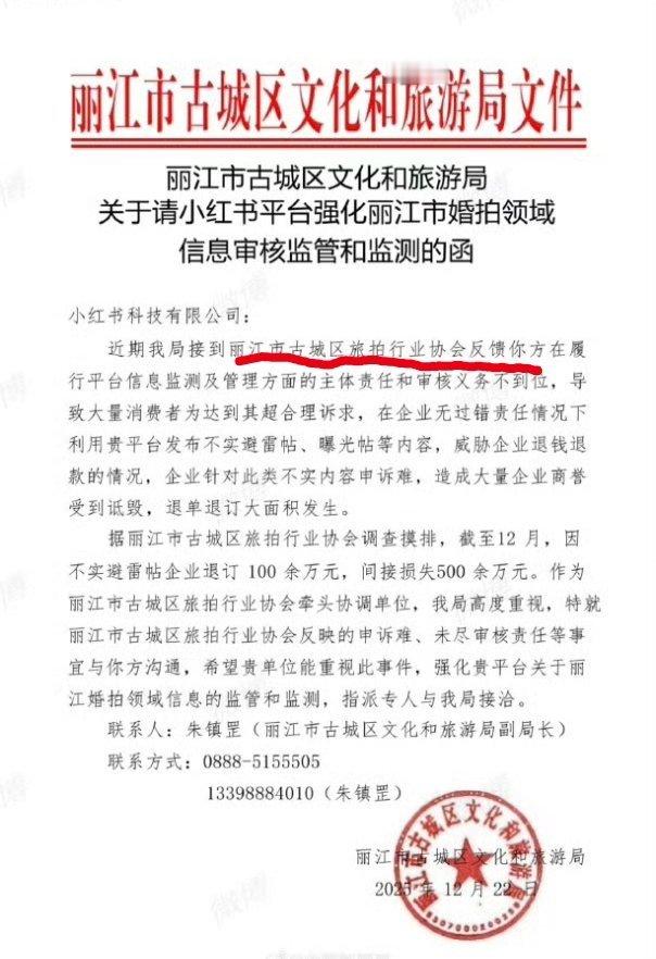 丽江公开发函喊话小红书看了一下,事情是这样的。丽江古城区文旅局接到了当地什么旅拍
