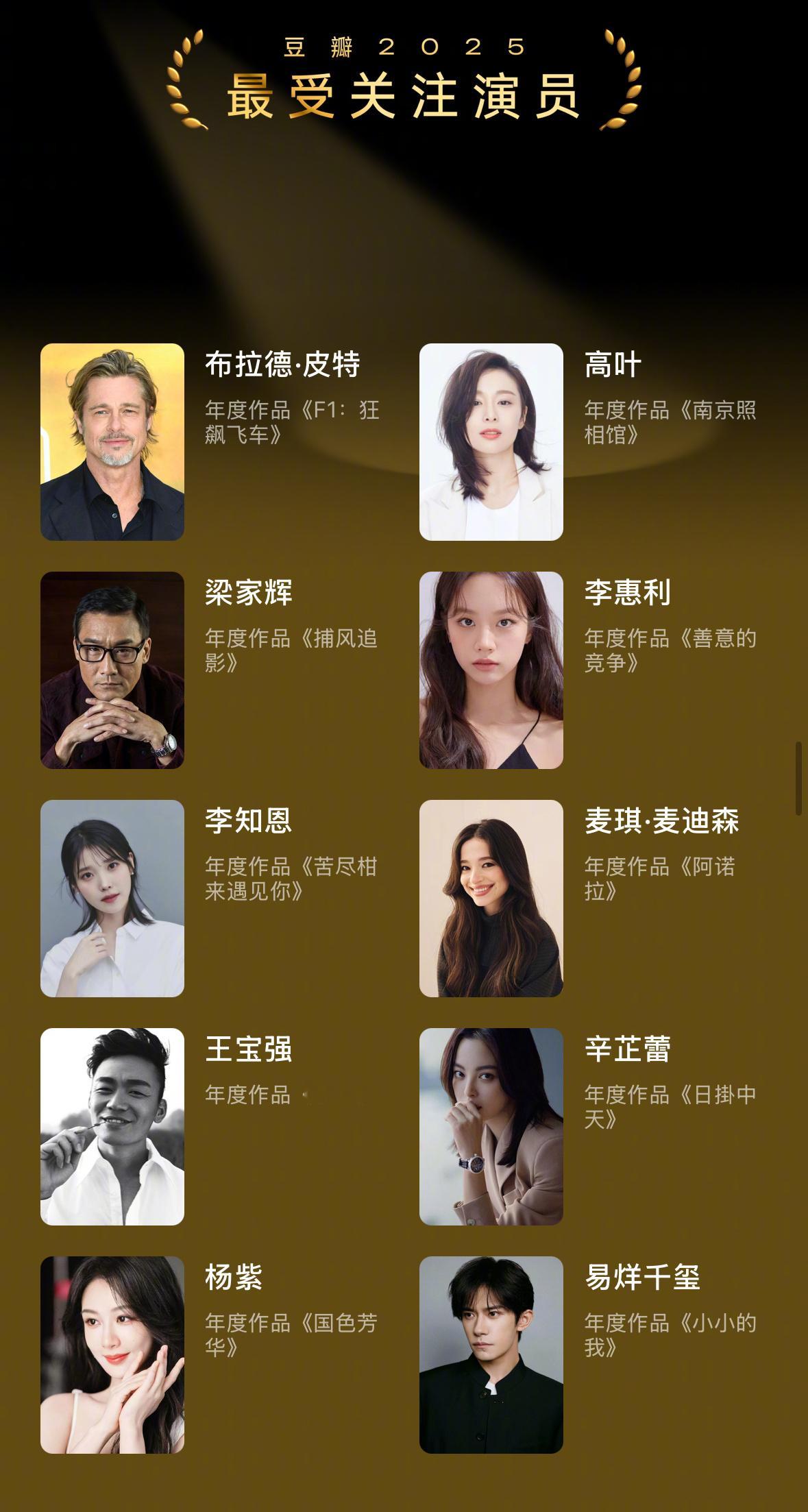舒淇、毕贛、申奥、辛芷蕾、易烊千玺、杨紫等电影人入选豆瓣2025最受关注导演、最