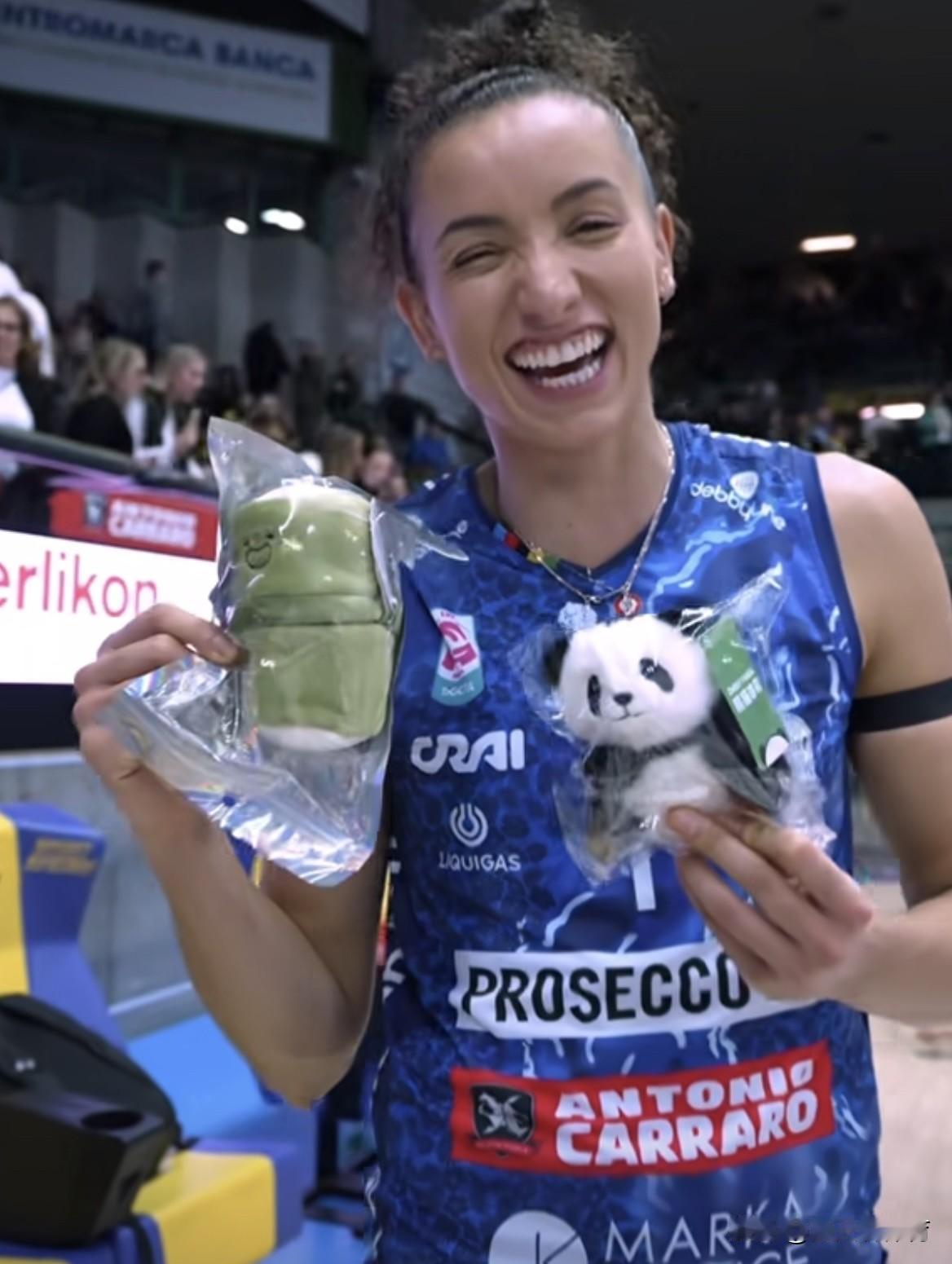 庄宇珊追星成功!今天凌晨跟科内利亚诺俱乐部打完,赛后庄宇珊拿着给自己偶像准备的小礼物,飞速跑到加比身边,送上可爱的熊猫和竹子挂件礼物,还跟加比拍了一张合照!中国加比追星巴西加比,希望我们中国的这位加比能早日成为真正的加比!这应该是庄宇珊第一次跟自己的偶像加比隔网对轰吧!期待未来有机会能跟加比做队友!