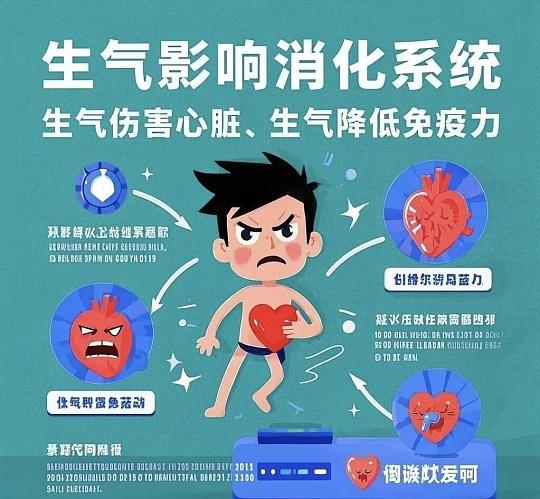 你可能觉得发完脾气就过去了,但身体却默默记下了每一笔“生气账”。 研究表明,愤怒会瞬间升高血压、加快心跳,让身体进入“战斗状态”。长期如此,心血管承受持续压力,冠心病风险显著增加。更值得警惕的是,生气时体内皮质醇水平飙升,这会抑制免疫系统,让人更容易生病。 从中医角度看,“怒伤肝”并非虚言。现代医学证实,愤怒情绪会影响肝脏功能,导致气血不畅。而心理学研究发现,长期易怒的人,焦虑和抑郁的发病率也更高。 情绪管理不是压抑愤怒,而是学会疏导: • 深呼吸片刻,给情绪一个缓冲期 • 尝试运动,用生理释放带动心理平静 • 表达感受时,用“我感到...”代替指责 健康的生活不仅需要均衡饮食和规律运动,更需要一份内在的平和。毕竟,最好的“保健品”,其实是一颗不容易生气的心。
