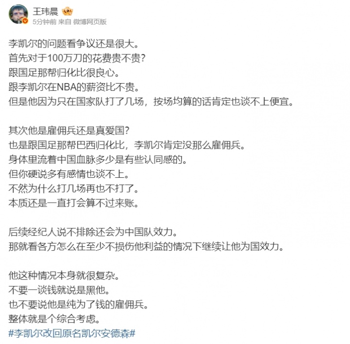 也是跟国足那帮巴西归化比,李凯尔肯定没那么雇佣兵。