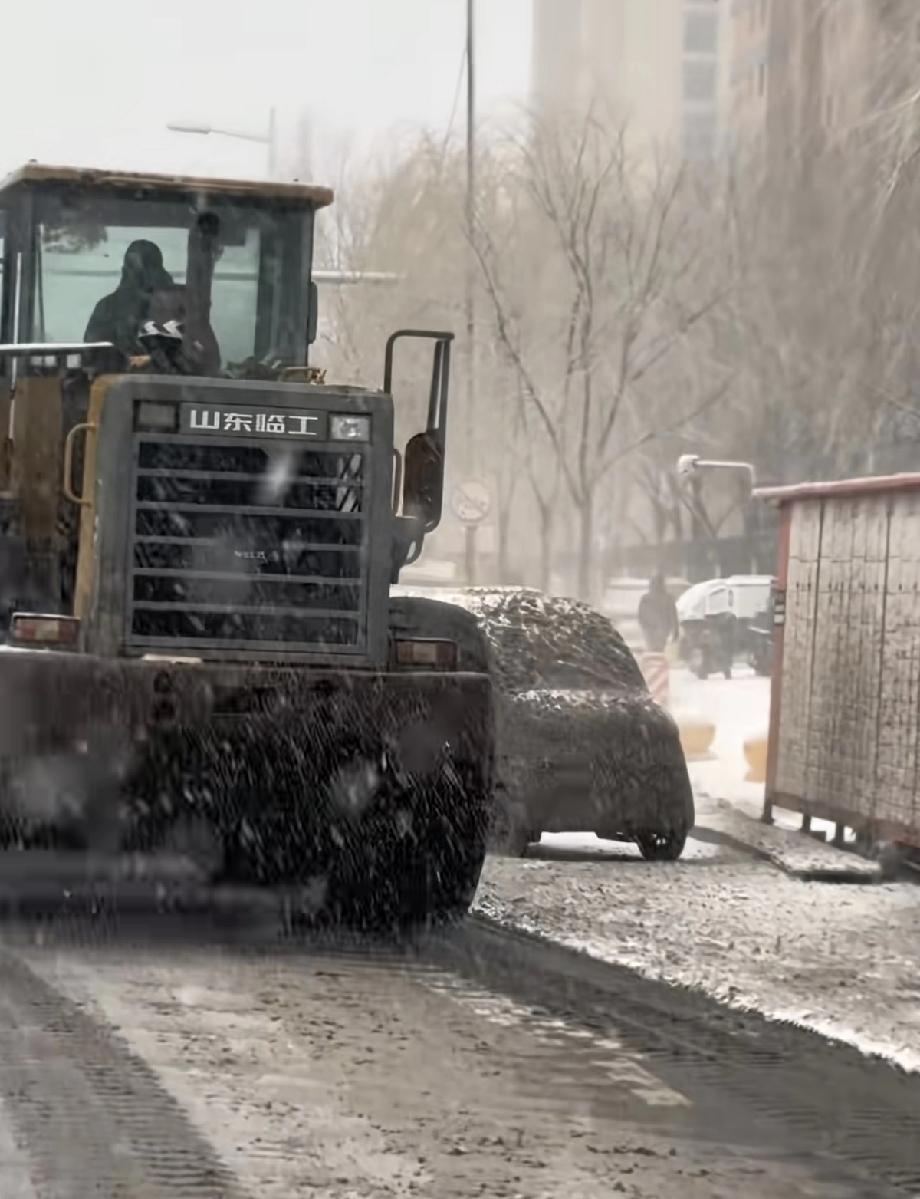 这些车下雪天停在这, 就应该做好被“喷”的准备。 这些违停在路边的车,不但占用公