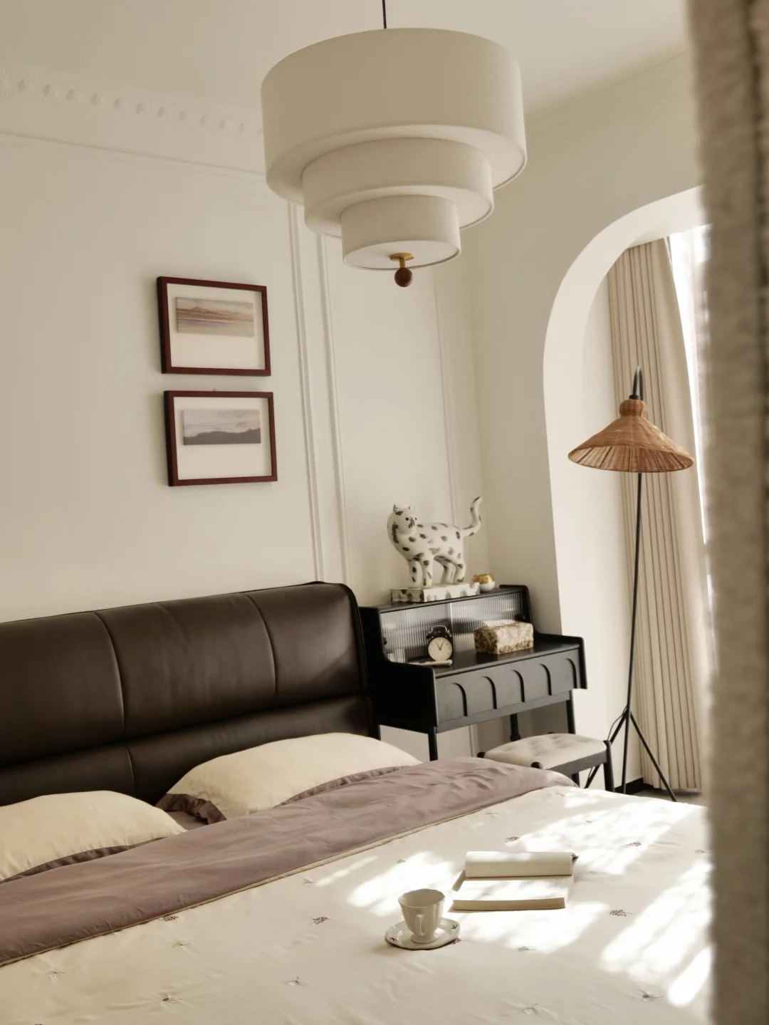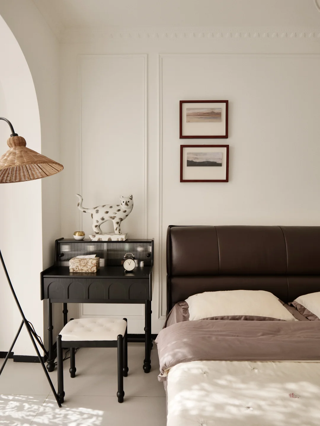 看了太多网红爆款,说实话都有点审美疲劳了。这张床一眼就不一样!那个线条设计特别有建筑感,栗壳色很有复古质感,它不张扬,可就是越看越好看,有一种克制又很高级的感觉。