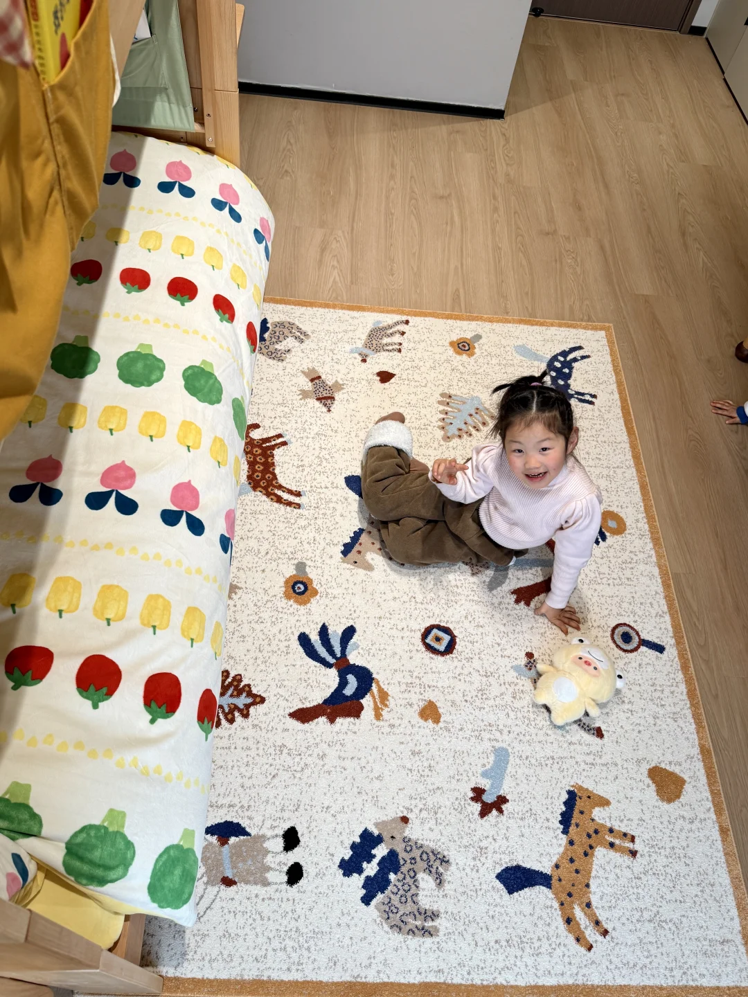 ✅儿童房地毯真的要好好选!我是做了好多功课,考虑到环保好用童趣,最后入手了这个无胶防水地毯,卡通图案的设计,瞬间提升整个房间的颜值,小朋友平时在房间玩耍吃东西,不小心撒上去了,一擦就干净,完全不会渗进去🙌