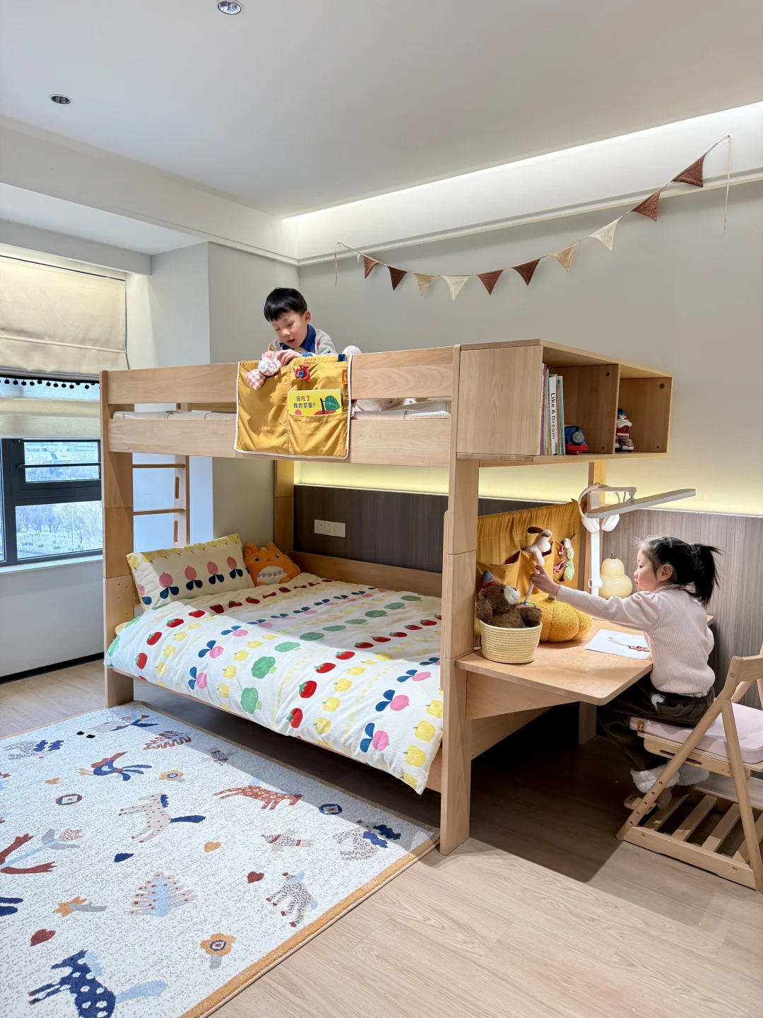 👧👶两个孩子只有一间8平米儿童房,也能拥有大空间!选一张可自由变化的儿童床🛏️可以做到集睡觉+学习+玩耍于一体的多功能空间!
