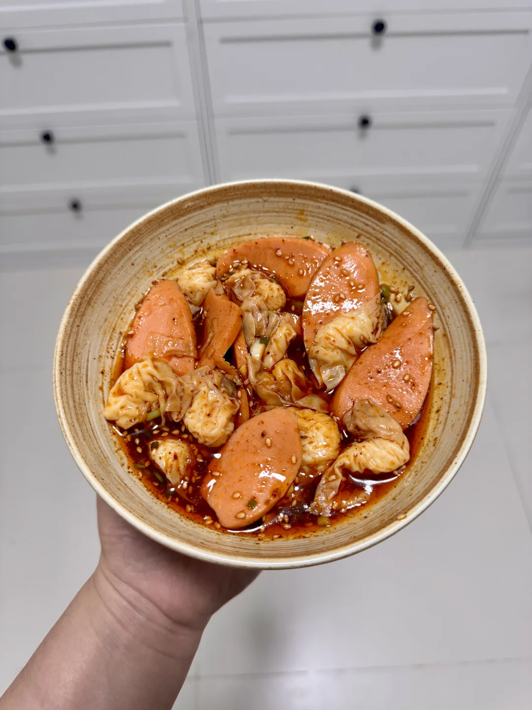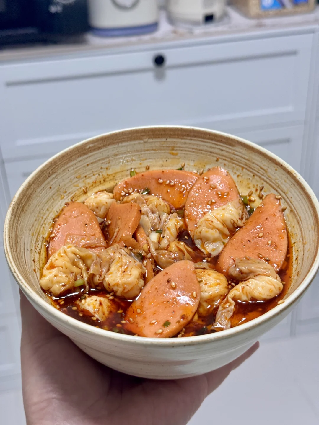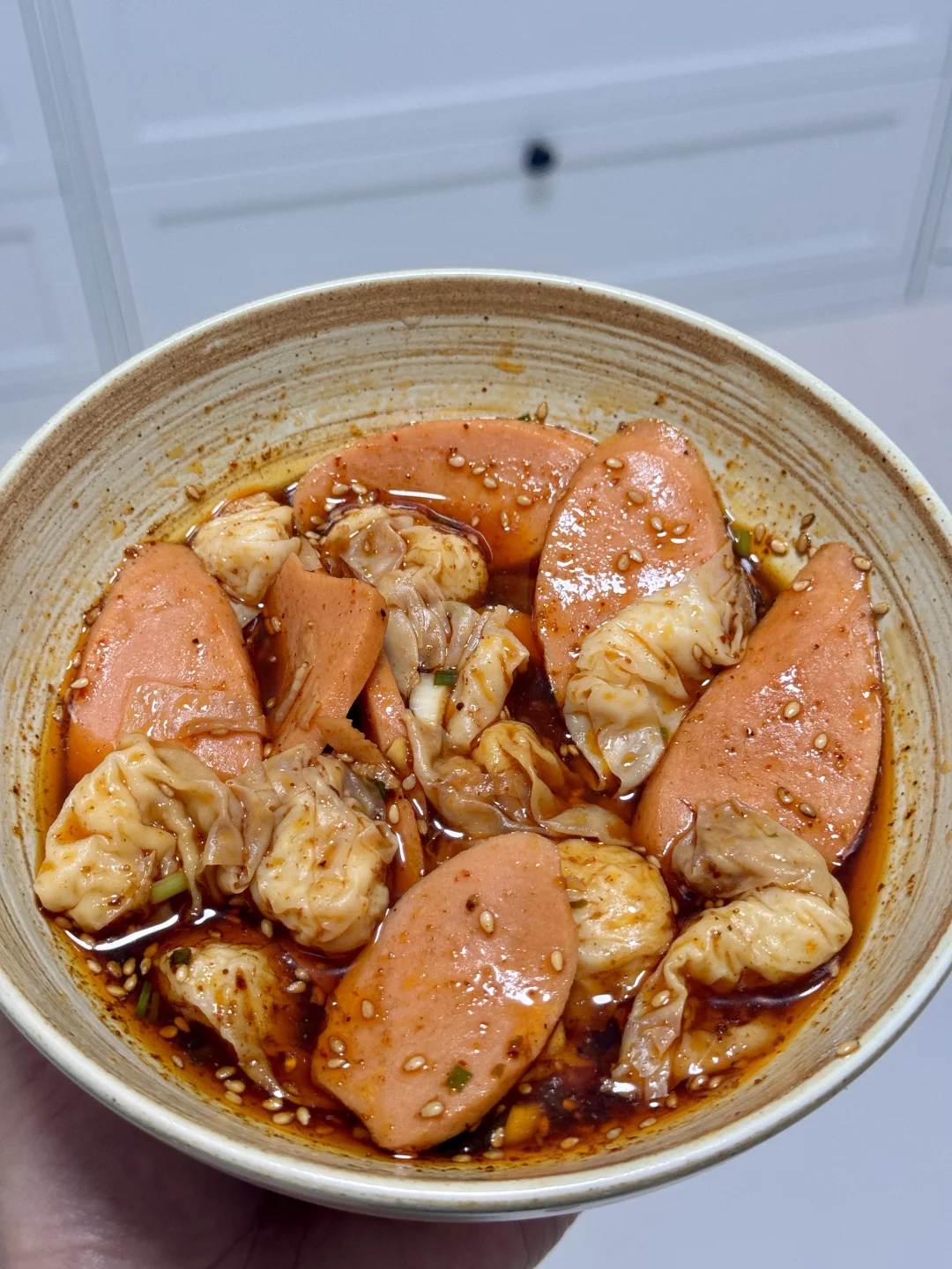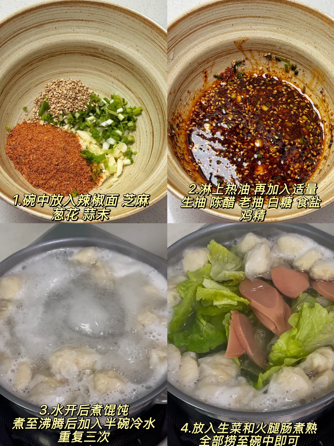 谁懂啊家人们!刚出锅的馄饨裹满酱汁往嘴里送,也太满足了吧!打工人早餐、夜宵来一碗,5分钟搞定,幸福感直接拉满💯 📜料汁:辣椒面、芝麻、葱花、蒜末,淋上热油后再加入适量鸡精,生抽,食盐,陈醋,老抽