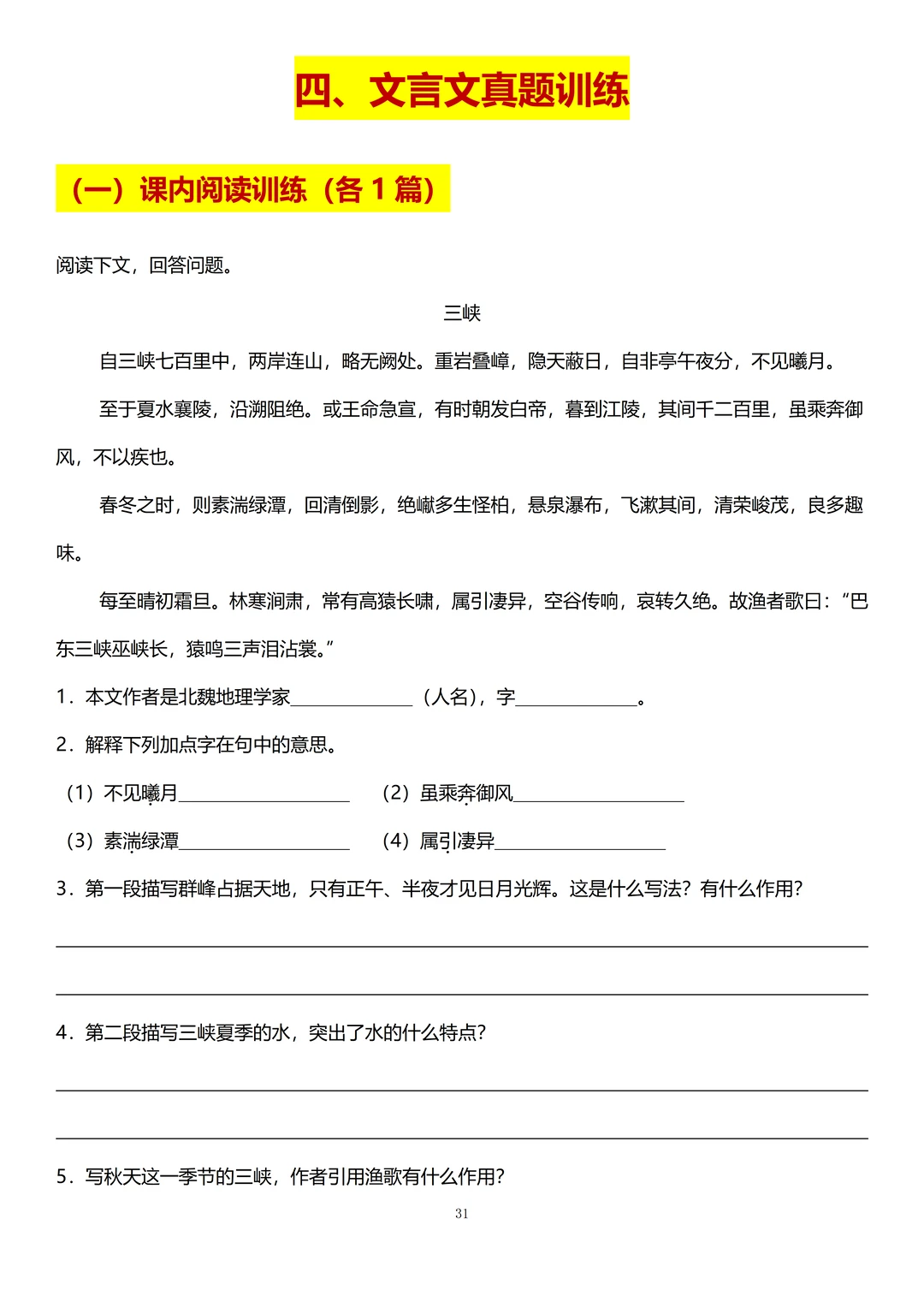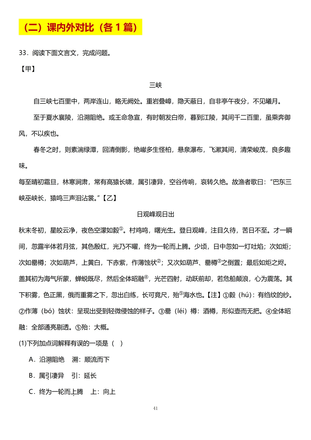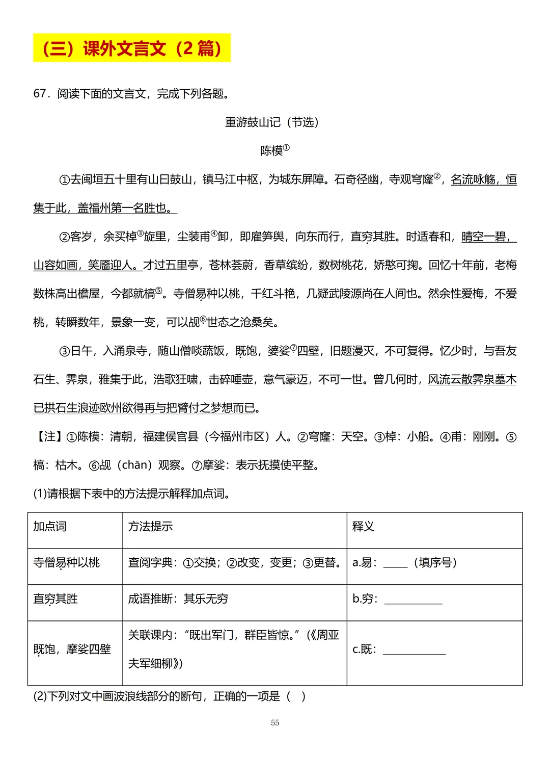 为了帮助大家提高期末考试文言文板块的分数,我精选了近 3 年各地期末考试的20篇文言文真题,包括课内文言文、课内外对比阅读以及课外文言文阅读,提前练好,无论考试考到哪种类型都不用慌。