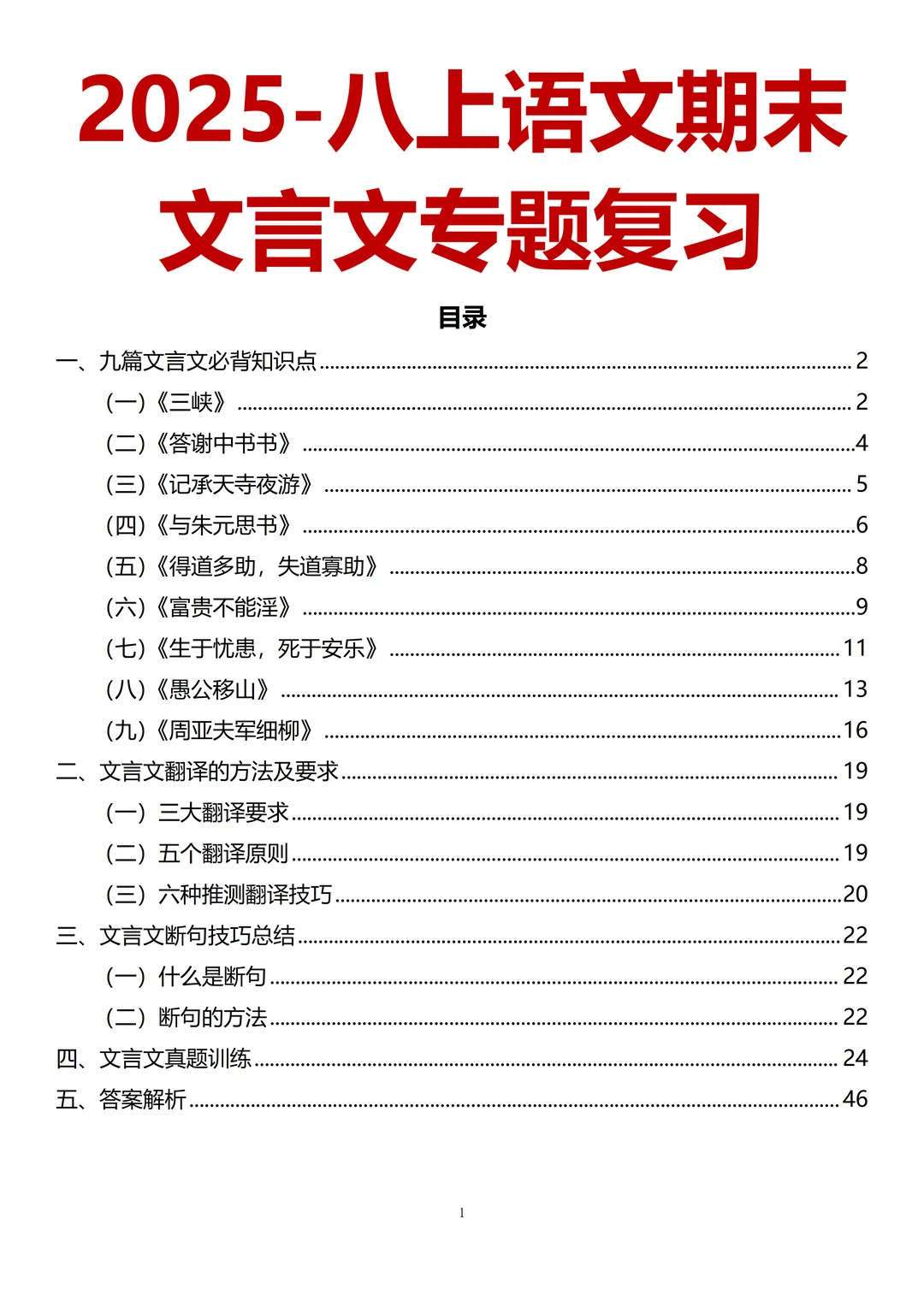 [害羞R]其实,只要复习好课内每一篇文言文的知识,就算遇到课外文言文,也能够把知识迁移过去。我看了上百张全国各地八上的期末考试试卷。帮大家整理了这份「八上文言文期末专题汇总」,从文言文翻译、断句、写作手法到主旨情感,4类必考点和9篇文言文真题全覆盖。语文要想得高分,文言文板块必须拿下!