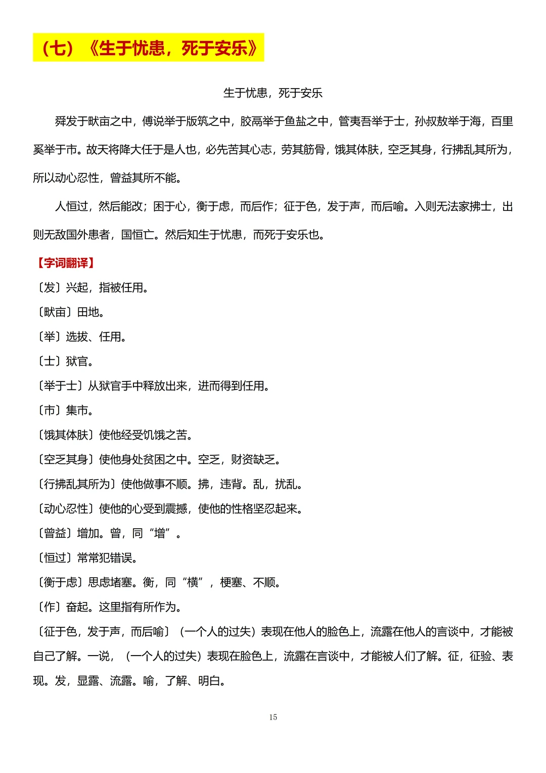针对八上期末考试的文言文考试范围,我总结了《三峡》《答谢中书书》《记承天寺夜游》 《与朱元思书》《得道多助,失道寡助》《富贵不能淫》《生于忧患,死于安乐》《愚公移山》《周亚夫军细柳》的重点字词和句子翻译。