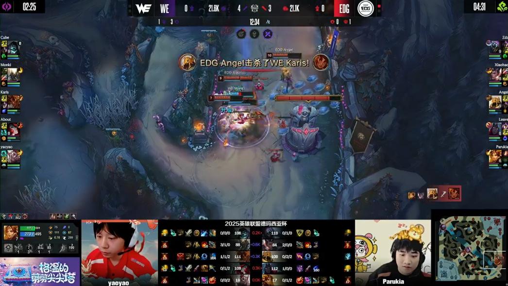 12分钟:WE越塔决策失误,EDG反蹲成功反杀三人