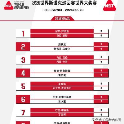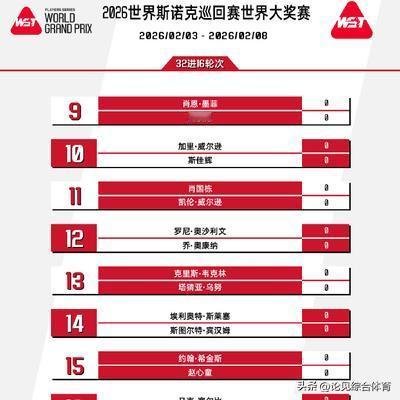 斯诺克:2026斯诺克世界大奖赛签表出炉 2026斯诺克香港世界大奖赛签表正式确定,根据单赛季排名,前32名选手将齐聚香港,赛事将于2月3日至8日举行。上周的苏格兰公开赛作为最后一项排名赛已圆满落幕,签表对阵为首尾对决,头号种子对阵单赛季第32名,二号种子对阵单赛季第31名,以此类推。 10位中国选手参赛,再创历史新高! 75三杰、80五虎全员参赛,阵容豪华! 卫冕冠军罗伯逊首轮对阵杰克琼斯。丁俊晖对阵霍金斯。赵心童对阵希金斯。奥沙利文对阵奥康纳。袁思俊再战特鲁姆普。吴宜泽对阵麦克吉尔。新科亚军常冰玉对阵利索夫斯基。肖国栋对阵威尔逊……你最期待哪场对决? 详细赛程将在近期公布
