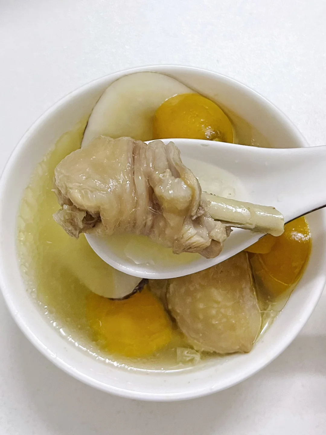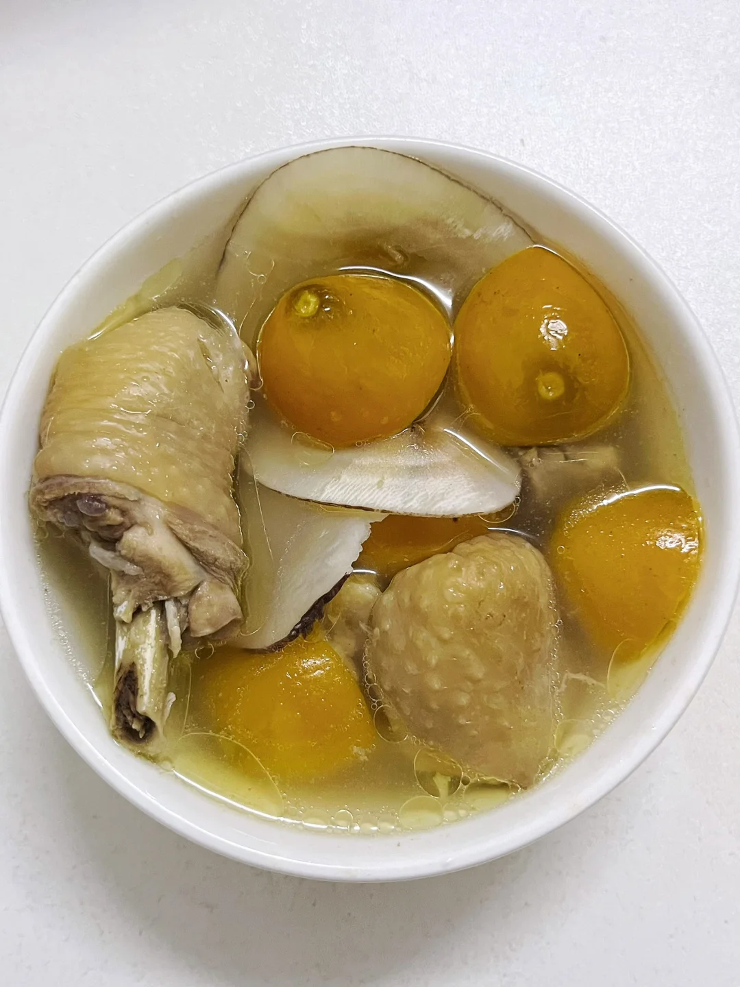 换季了,家里小朋友和老人都容易口亥嗽嗓子干。周末炖了这锅桔川贝土鸡汤,清甜润口候,清🫁止口亥,脆蜜金桔加土鸡,煲出来的汤超级鲜甜,喝完超舒服的!
