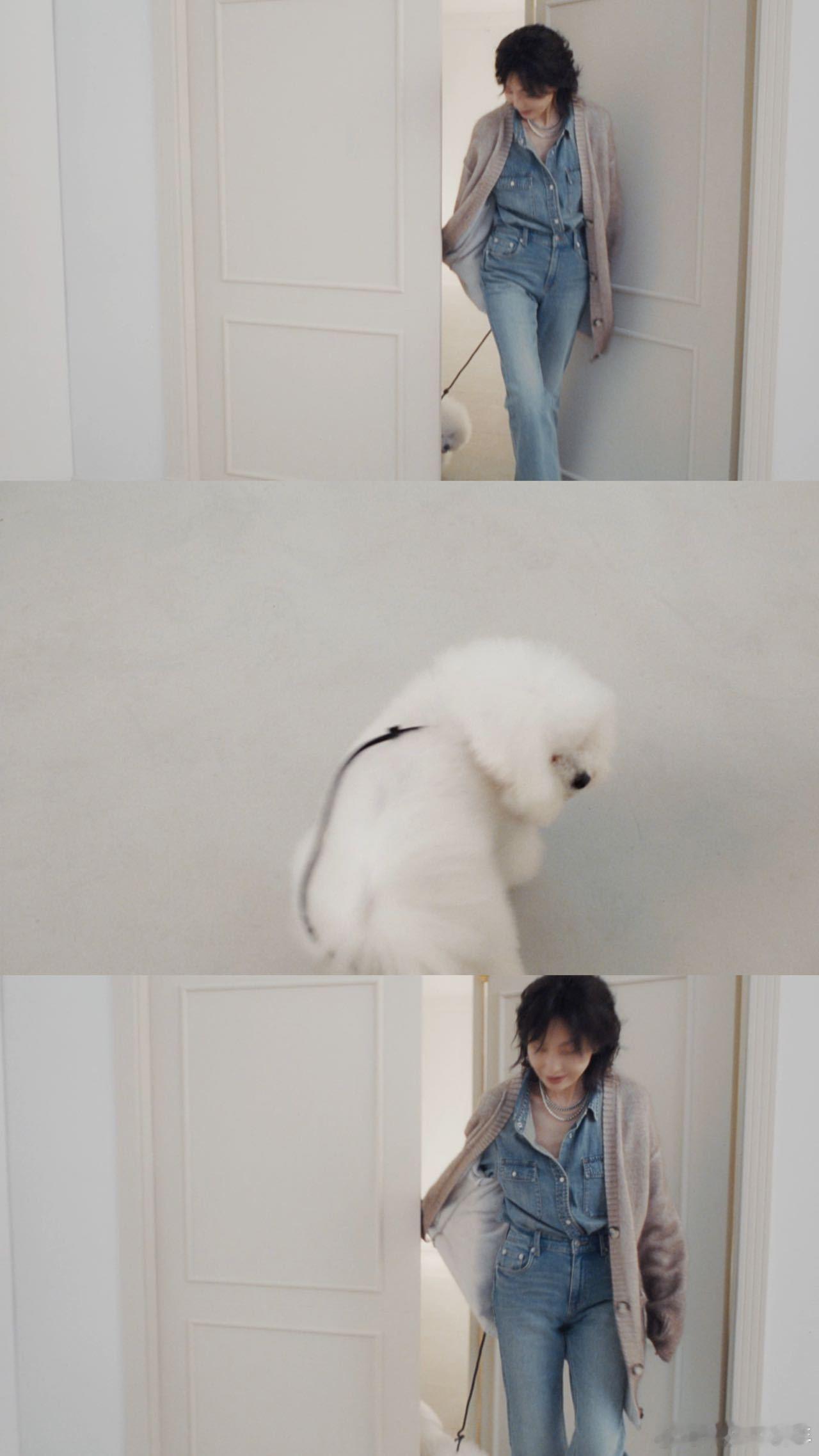 张曼玉牵狗上班 张曼玉牵着狗狗拍的MO&Co.代言短片好松弛,白衬衫配黑咖啡,和狗狗打闹的日常感,把代言拍成生活vlog,曼神的松弛感刻进骨子里!