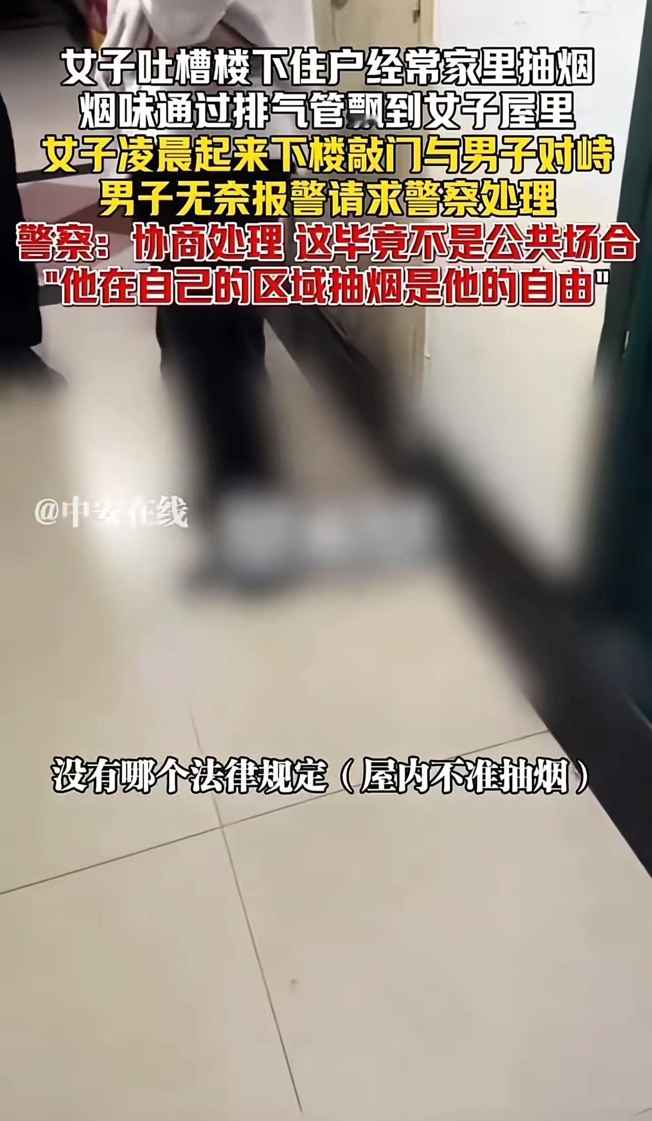 我的天!凌晨5点哐哐砸门骂街,四川大姐为烟味报警,民警一句话让她哑口无言! 真没见过这么刺激的邻里纠纷!凌晨五点半啊,大家睡得正香,四川一位大姐直接哐哐砸楼下邻居家门,扯开嗓子就骂“你个傻叉”,那动静大得整栋楼都能听见! 原来大姐说家里飘进烟味,认定是男邻居抽的,之前都找过好几次了,这次实在忍不了爆发了。男邻居睡得迷迷糊糊被吵醒,气得直怼:“我在自己房间抽,关你啥事?” 大姐不服气,当场掏手机报警,非要民警来评理。 结果民警一了解情况,直接明说:人家在自家抽烟是自由,公共场合才禁止,有意见得好好商量。大姐听完瞬间蔫了,估计自己都没料到是这结果。 邻里之间哪能这么冲动!有事儿好好说,别上来就骂人砸门,越闹越僵多不值当,互相多迁就点,日子才能顺顺当当的! 邻里矛盾有多离谱 自家抽烟该不该管 凌晨砸门讨说法 民警调解名场面