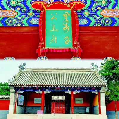 从热闹的海拉尔大街转入路牌所示的“公主府街”时,眼前景象变得幽静起来。树木掩映之下,一座红墙青瓦的典雅院落静立于此。松绿色的门额上,金色的汉字与满文“公主府”字样,似乎将时间拨转回300多年前。
