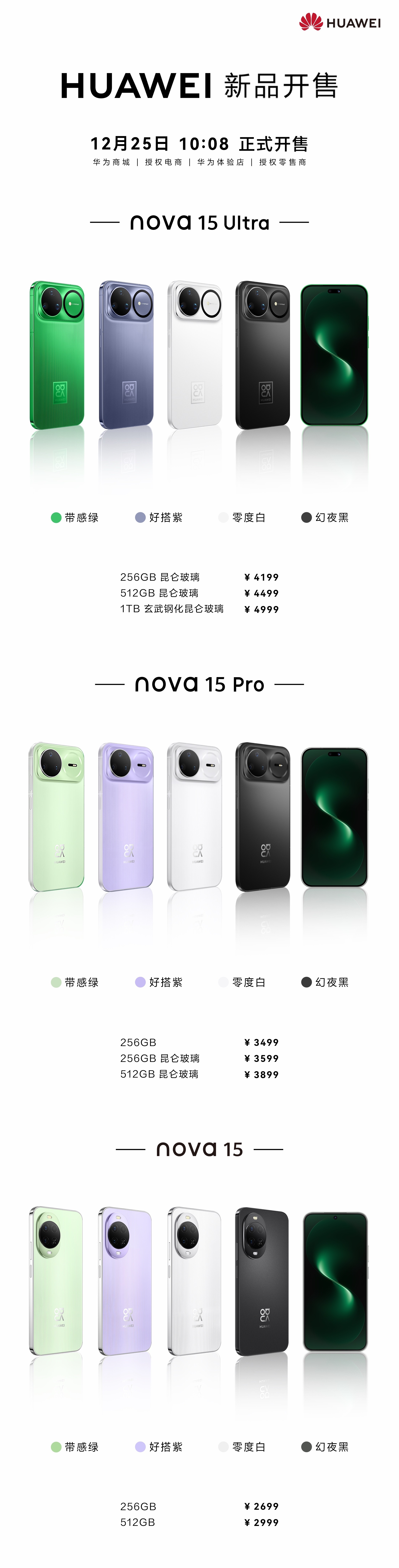 华为nova15系列正式开售 nova 15系列今日10:08又要开始抢了~