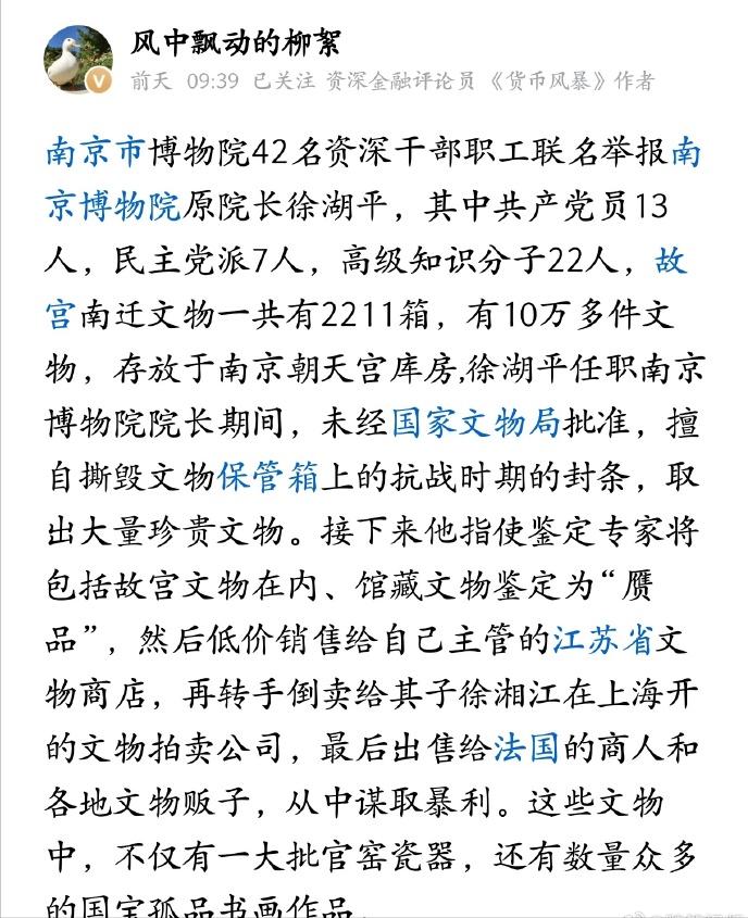 南京博物院这次的事真是让人开了眼。闹了半天,当年故宫南迁的文物,竟然还有2000多箱、超过10万件,一直被锁在南京的仓库里,几十年没开过箱。 说是“等合适时机再整理”,故宫那边想要回去,这边也一直拖着。先不说这些箱子到底有没有被人动过,光是让这么多宝贝一直不见天日,就已经够离谱了。 这些文物当年是因为打仗才紧急打包南运的,是为了逃难、为了活下来。可现在仗打完都多少年了?和平年代,十多万件故宫级别的国宝,居然还在仓库里“睡大觉”,不整理、不研究、不展览,那它们和一堆旧箱子有什么区别? 回不回北京故宫,其实没那么急。最要紧的是,得让它们先“活过来”。字画、档案这些本来就娇气,几十年只靠一层木板封着,真的不会受潮、发霉、坏掉吗? 更让人担心的是,东西一直藏着掖着、没人盯着,反而容易招贼。这就好比把金砖埋在没人知道的后院,时间久了,难保不会有人动歪心思。而且一旦出事,查都没法查。 文物只有摆到明面上,有人看、有人管、有人研究,才算真的安全,也才算没白费它们存在的意义。 是时候开箱了。别让躲过战火的宝贝,最后烂在了自己人手里。