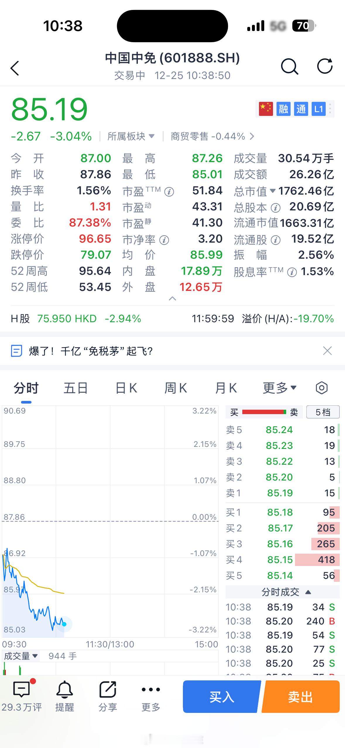 三亚免税店连续5日销售额破亿这么好的势头,中免也仅仅连续上涨了两天这只从400块钱跌下来的免税茅,现在真的不行了~