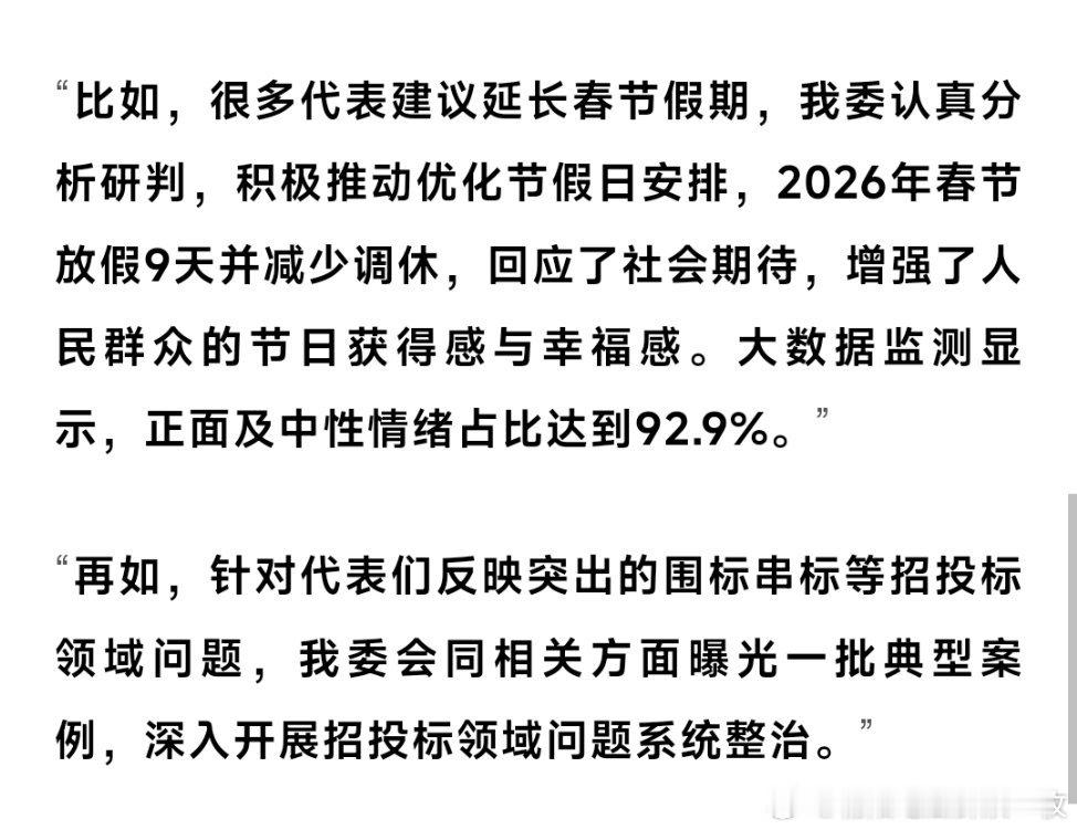 2026年春节将放假九天郑栅洁作报告:我委认真分析研判,2026年春节放假9天并减少调休,回应了社会期待!