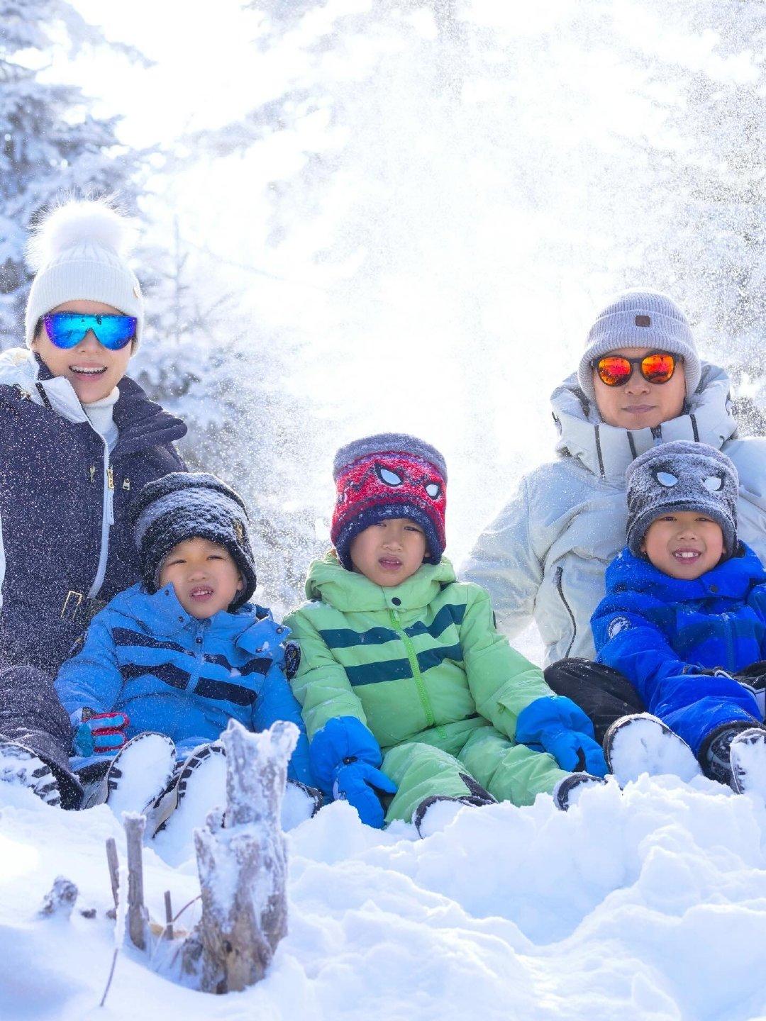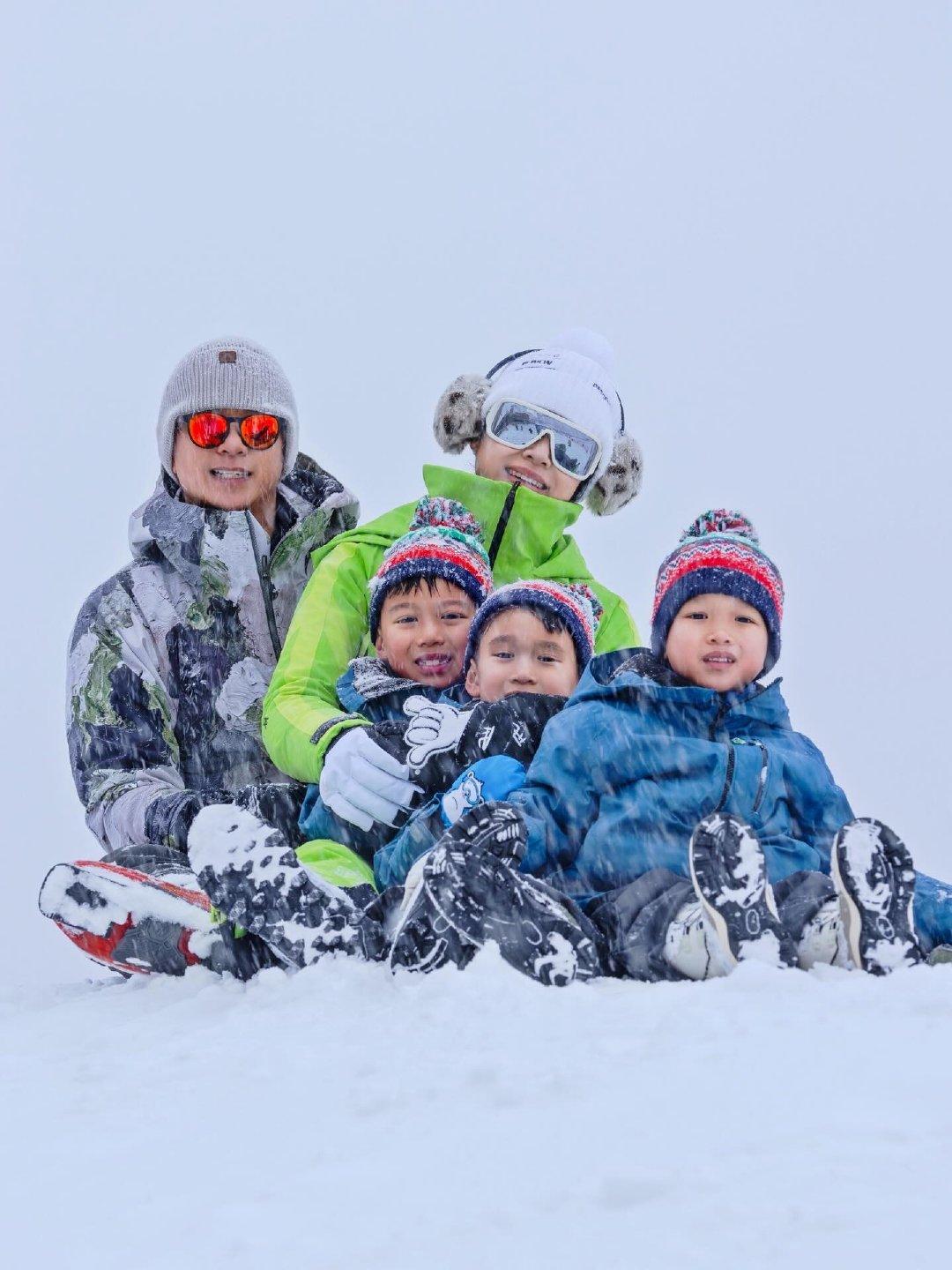 12月25日圣诞节,胡杏儿和老公李乘德带三个儿子去滑雪,一家人看起来好幸福。 她的三个儿子好可爱,颜值都挺高的,长相融合了父母的特点,眼睛小小的,鼻子很秀气。 前段时间,李乘德在夜店抱美女,引发他们夫妻俩感情不好的猜测!但从这次家庭旅游来看,他们夫妻俩又搂又抱,看起来挺恩爱的。