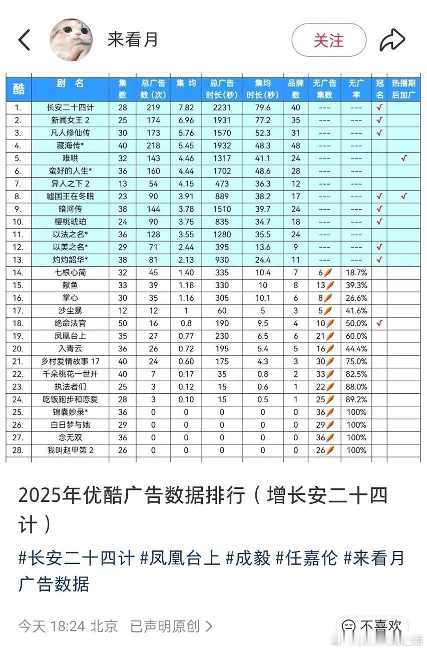 谢淮安被刺成毅《长安二十四计》总共28集就刷新了众多40集剧集的历史记录,经济环境不太好的情况下商业价值就是一切,招商为王!下半年三部剧都是满广,创造出多项广告记录,成毅的抗招商实力太顶了!