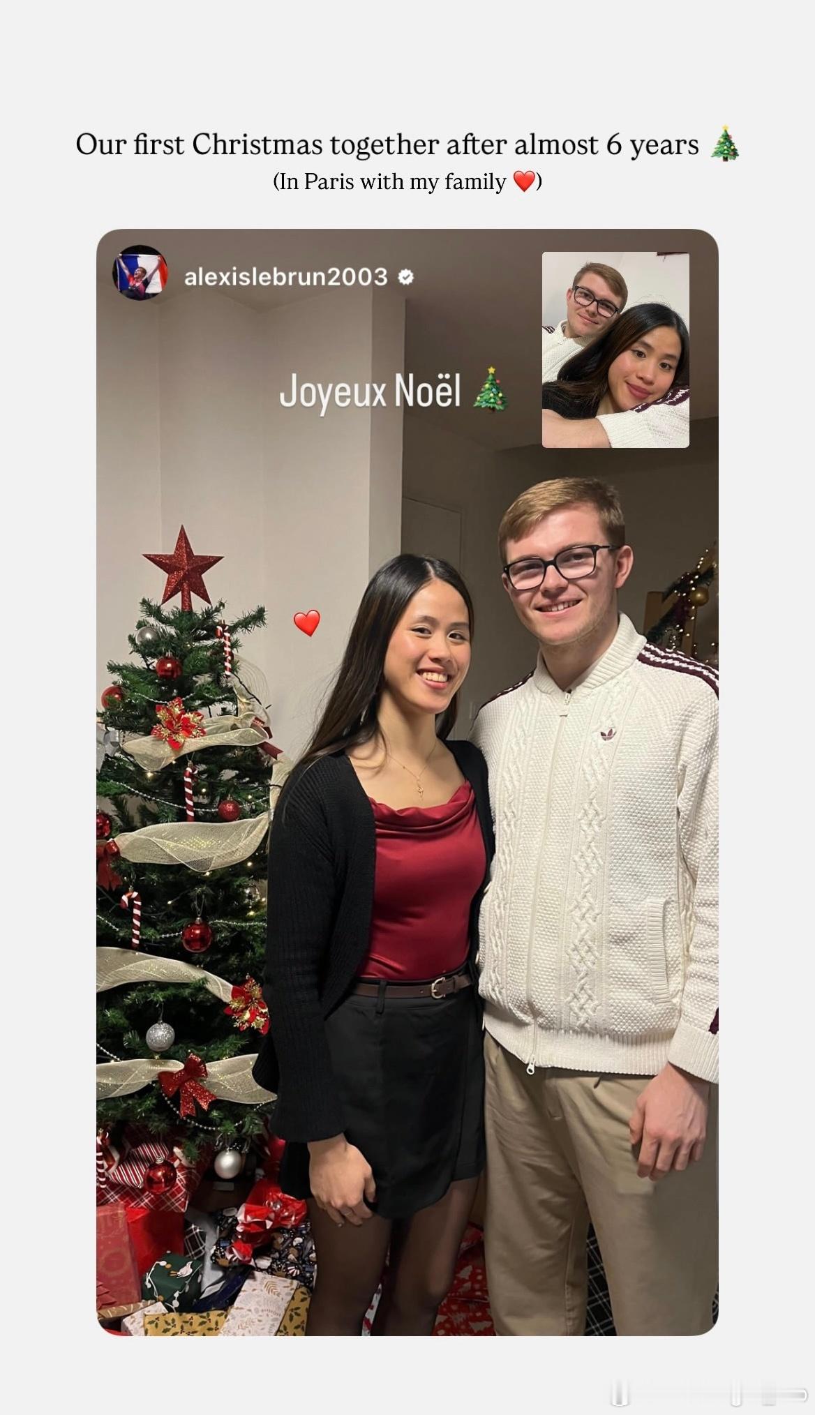 Alexis:圣诞快乐🎄Melody:在一起近六年后,这是我们共度的第一个圣诞节🎄(和我的家人在巴黎❤️)