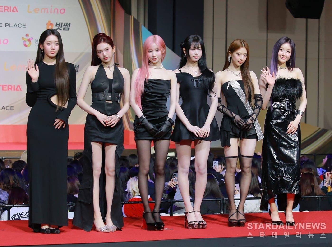 BABYMONSTER今日SBS红毯整体造型不错,在红毯还是大体积或长款裙装能镇得住场子。合照来看忙内较为突出,高马尾露出全面,裙子有设计感露出修长笔直的双腿,虽然鞋子突变公主风胜在尖头细跟没防水台。