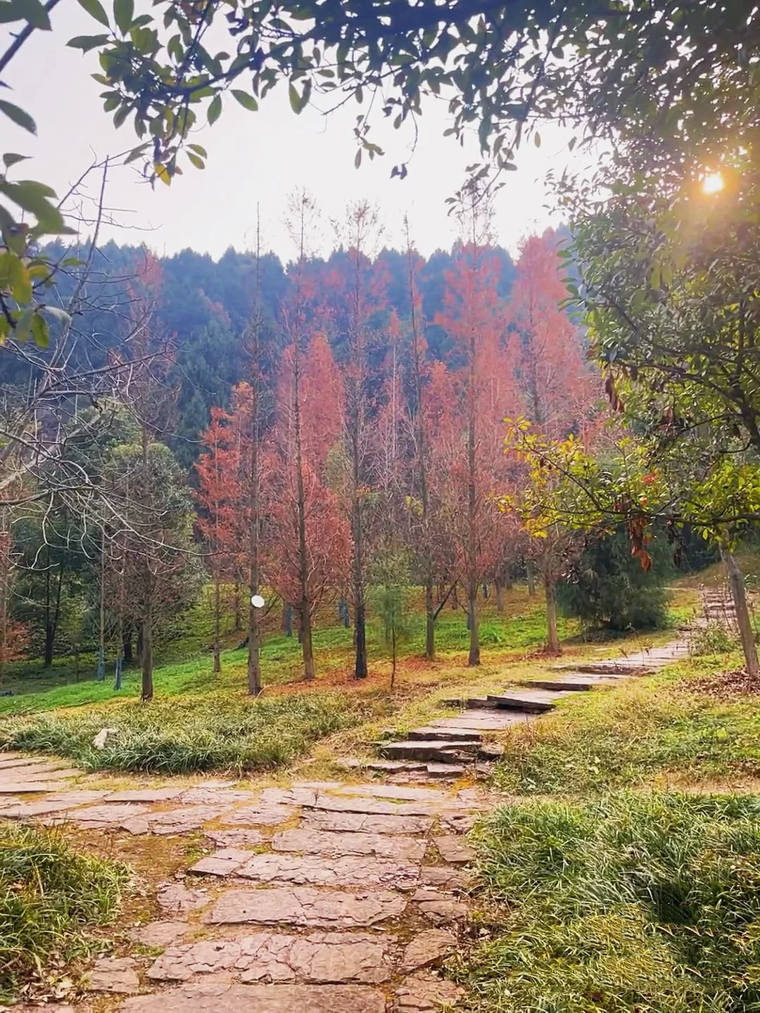 1️⃣路线十分平缓,几乎无攀升,对亲子家庭和毛孩子格外友好。牵着娃、遛着狗,就能轻松走入一片被秋色浸染的静谧之中。