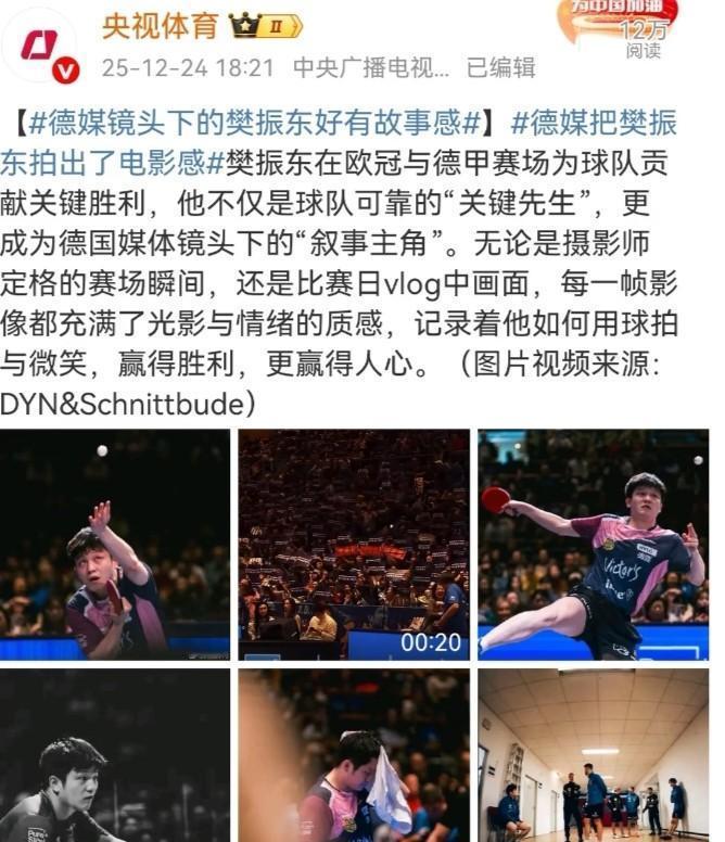 德国人喊他凯撒·樊的时候,你的DNA动了。 你没看错。 德国镜头对准他,拍出了史诗电影的味道——不是青春励志片,是王者征服史。 他们管那叫“东方智慧与西方力量的完美结合体”。 这话听着玄乎,但你看他击球:手腕一转,落点刁钻到毫米;腰腹发力,弧线暴力又优雅。 欧洲解说员词穷,只能反复念叨一个德语词:Kaiser。 定海神针不是飘着的。 数据钉死了:世界第一坐了15个月,欧冠德甲奖杯摆了一排。 去年德国公开赛那场决赛,海外播放量破了500万。 老外盯着屏幕琢磨:这中国人的球,怎么既有太极的缠劲,又有重炮的杀伤力? 但最戳人的,是赢球后他那个笑。 周正,敞亮,像刚卸下铠甲的少年。 你突然懂了——所谓传奇,不是高高在上的神迹,是咬牙扛住千斤压力后,还能对你露出的那抹阳光。 他握拍的手改写规则,他弯起的眼治愈人心。