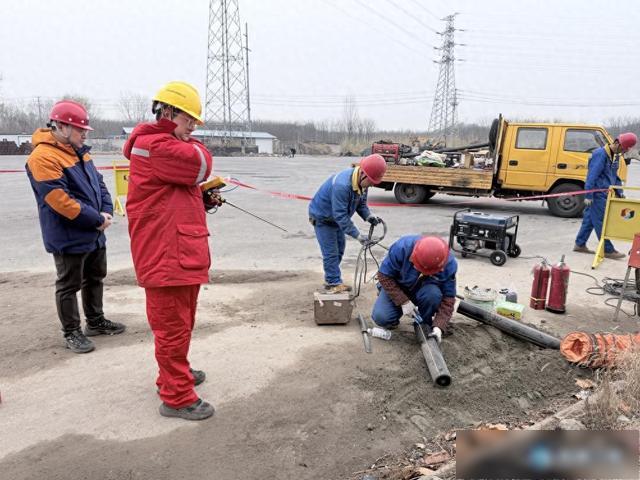 随后,应急抢修组到达现场,迅速开展泄漏点定位、浓度检测和阀门的控制。“阀门已关闭”“现场浓度检测为零,具备抢修条件!”指令下达后,抢修人员清理出作业面,找到泄漏点、分析原因并开展抢修。完成紧急修复后,他们对修复管道进行全面检查,彻底排除隐患。应急抢修组打开燃气控制阀门恢复供气。演练总指挥正式宣布应急演练结束。