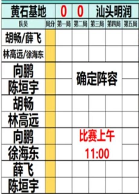 乒超男团半决赛 林高远/徐海东3:0薛飞/胡畅 双打拿下一分 12月27日, 南京乒超总决赛 男团半决赛, 林高远/徐海东3:0薛飞/胡畅 11:4,11:5,12:10 黄石基地没有让主力林诗栋上场, 真的是大格局, 林诗栋好好休息, 一年到头就休息了这几天, 保存体力, 为1月7日的多哈冠军赛蓄力! 这样明润的实力会更强一些, 明润晋级决赛不是啦!