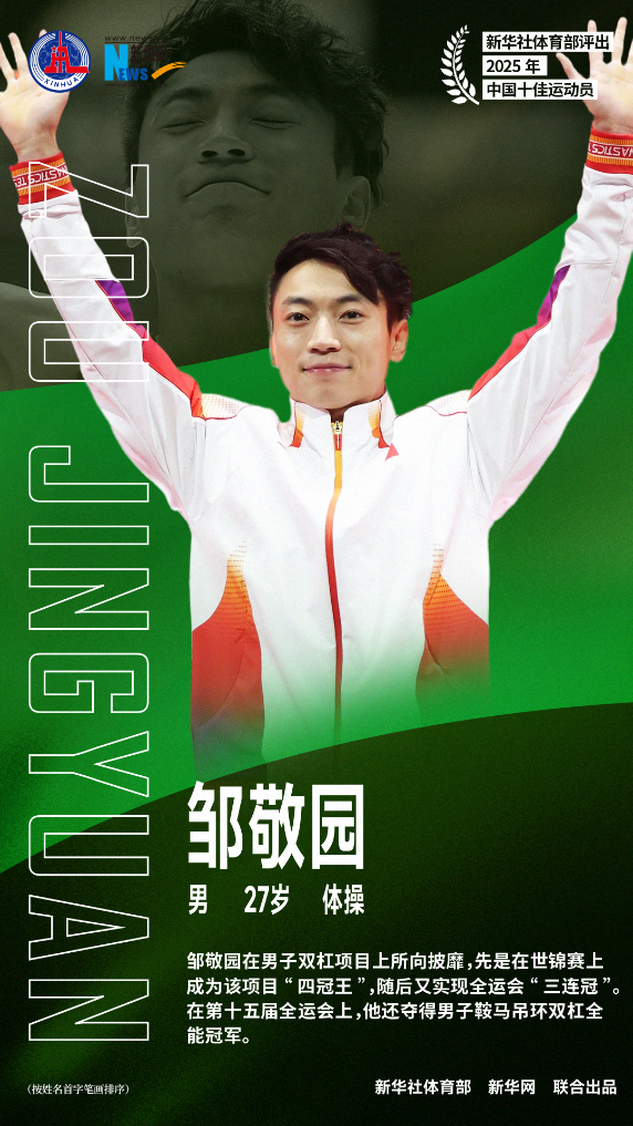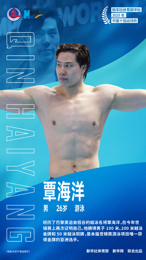 新华社体育部评出2025年中国十佳运动员如下(按姓名首字笔画排序):