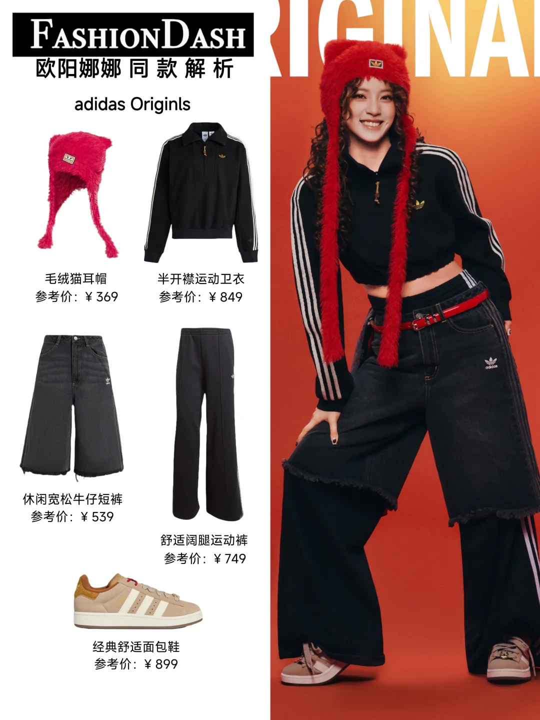 欧阳娜娜:甜酷少女风太戳了,红色毛绒针织开衫配微喇牛仔运动裤,脚踩复古运动鞋,红调单品呼应新年,甜妹过年这么穿又美又灵~另外一套黑红撞色吸睛,红色毛绒猫耳帽为黑色主调添俏皮活力,温暖又有满满的新年氛围,卫衣搭配黑色牛仔阔腿面包鞋,整体随性又时髦!