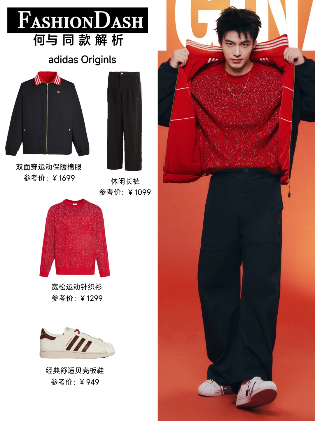 何与:红黑撞色拿捏新年氛围!一套是红色针织衫搭棉服,另一套慵懒风针织开衫配红色连帽卫衣,酷帅又有节日感!